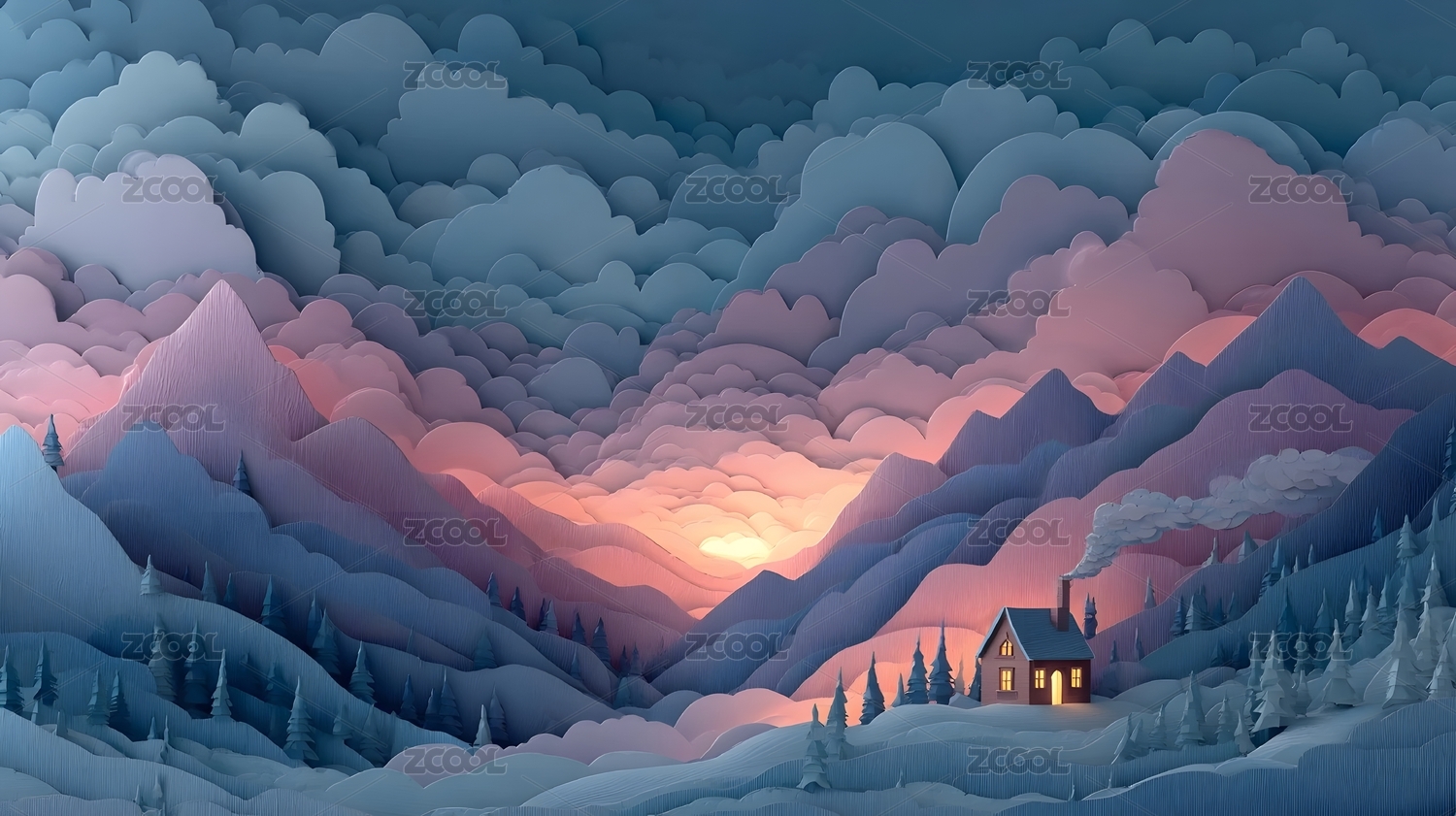 屋顶,艺术,房屋,天空,太阳,设计,山脉,森林,树木,山峰