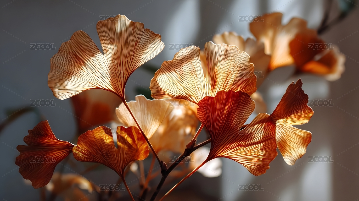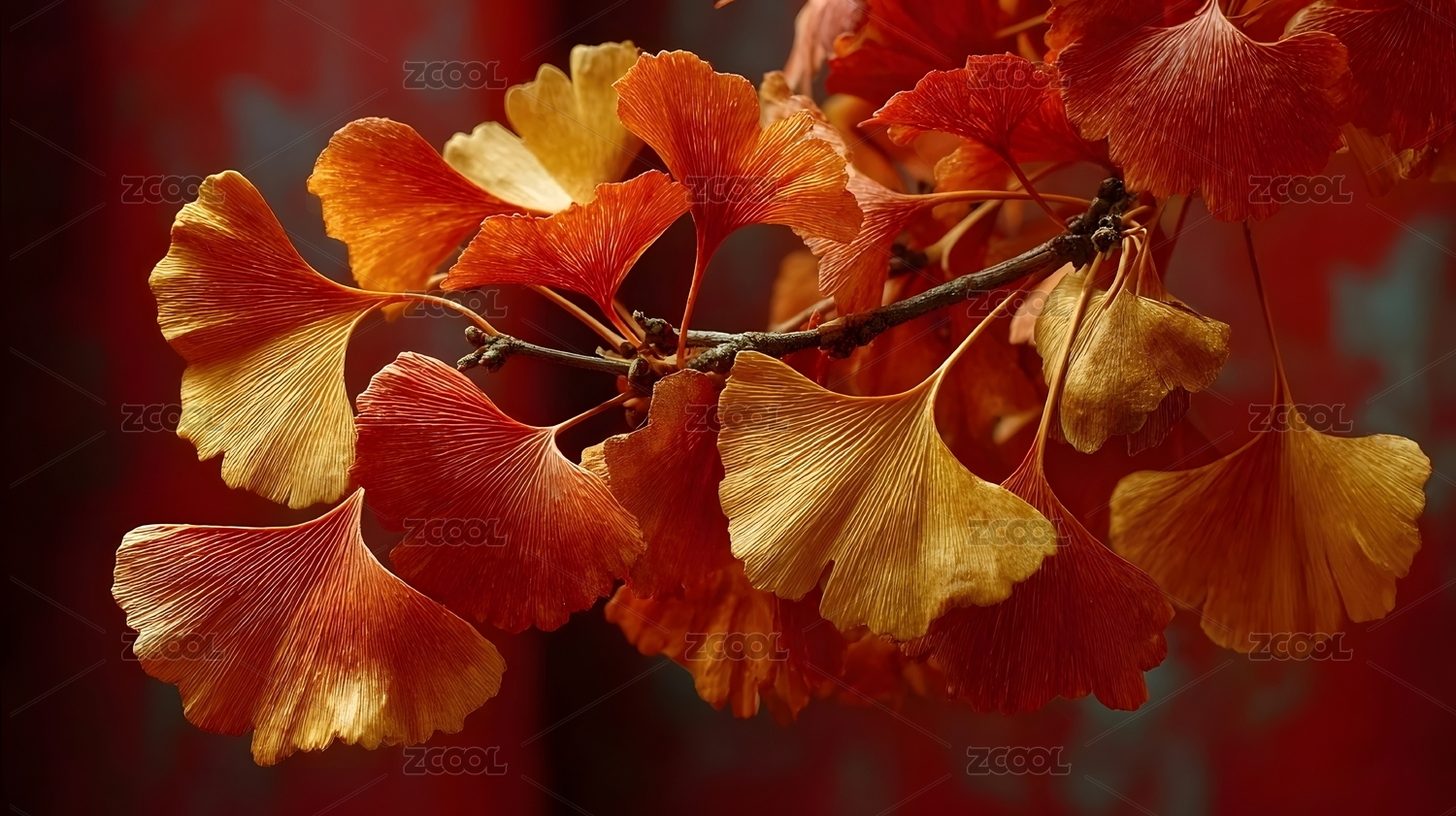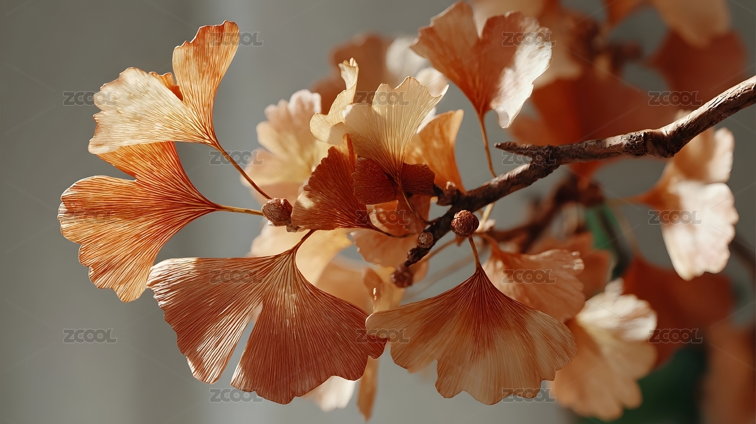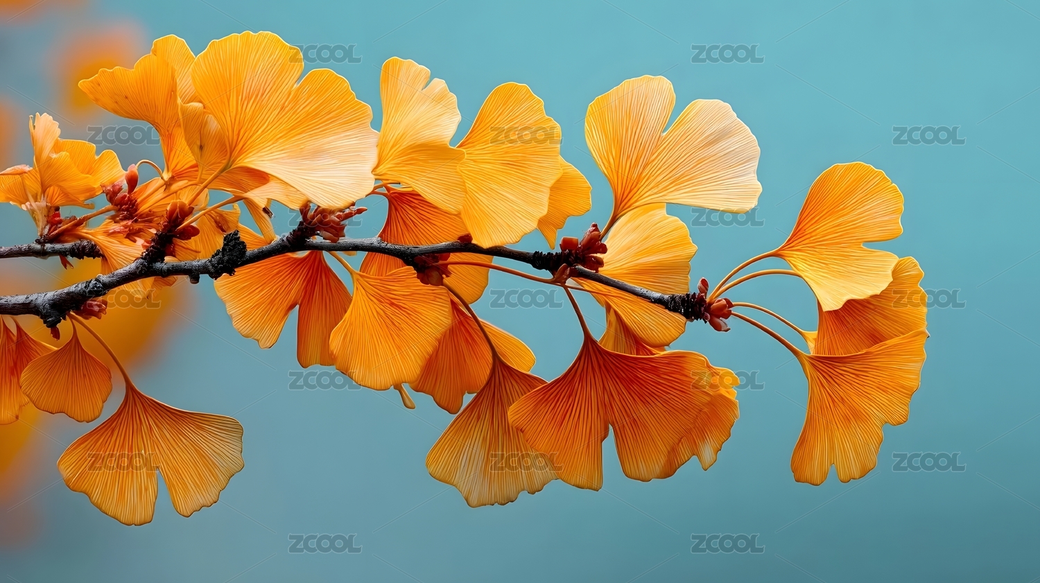 银杏,叶子,枝条,橙色,背景,自然,脉络,特写,植物,叶脉