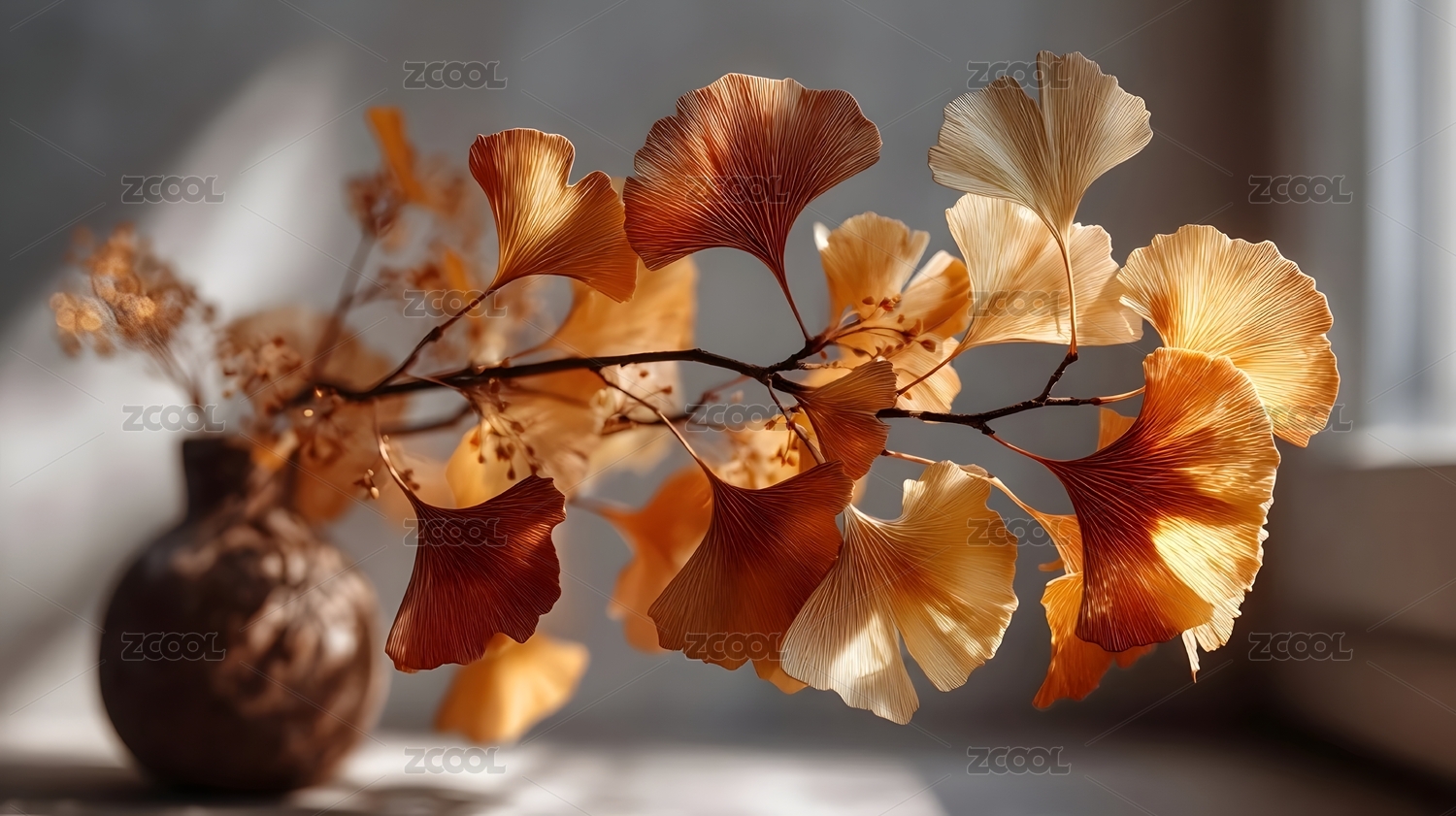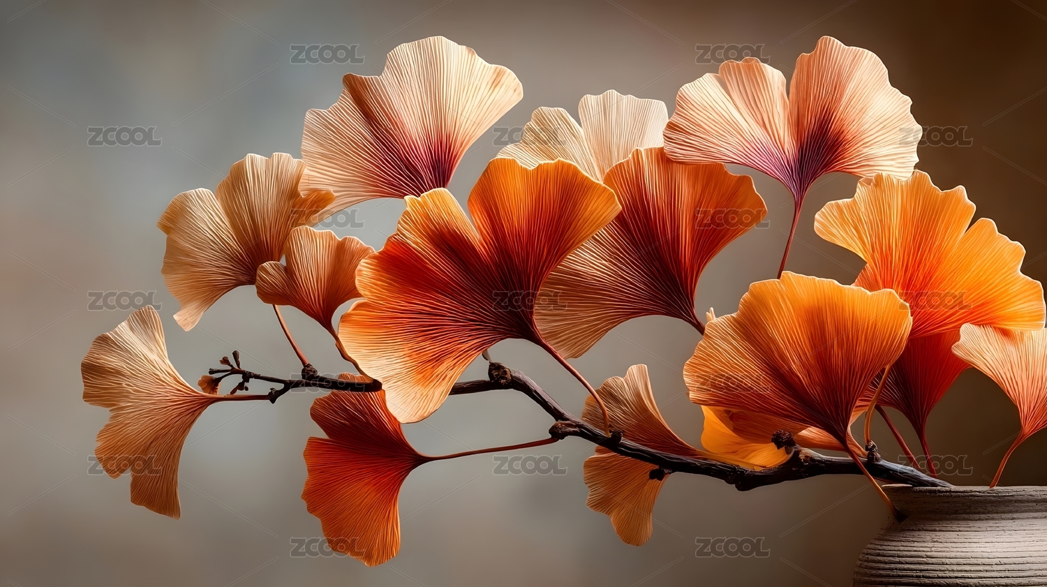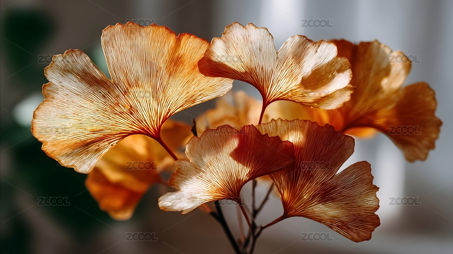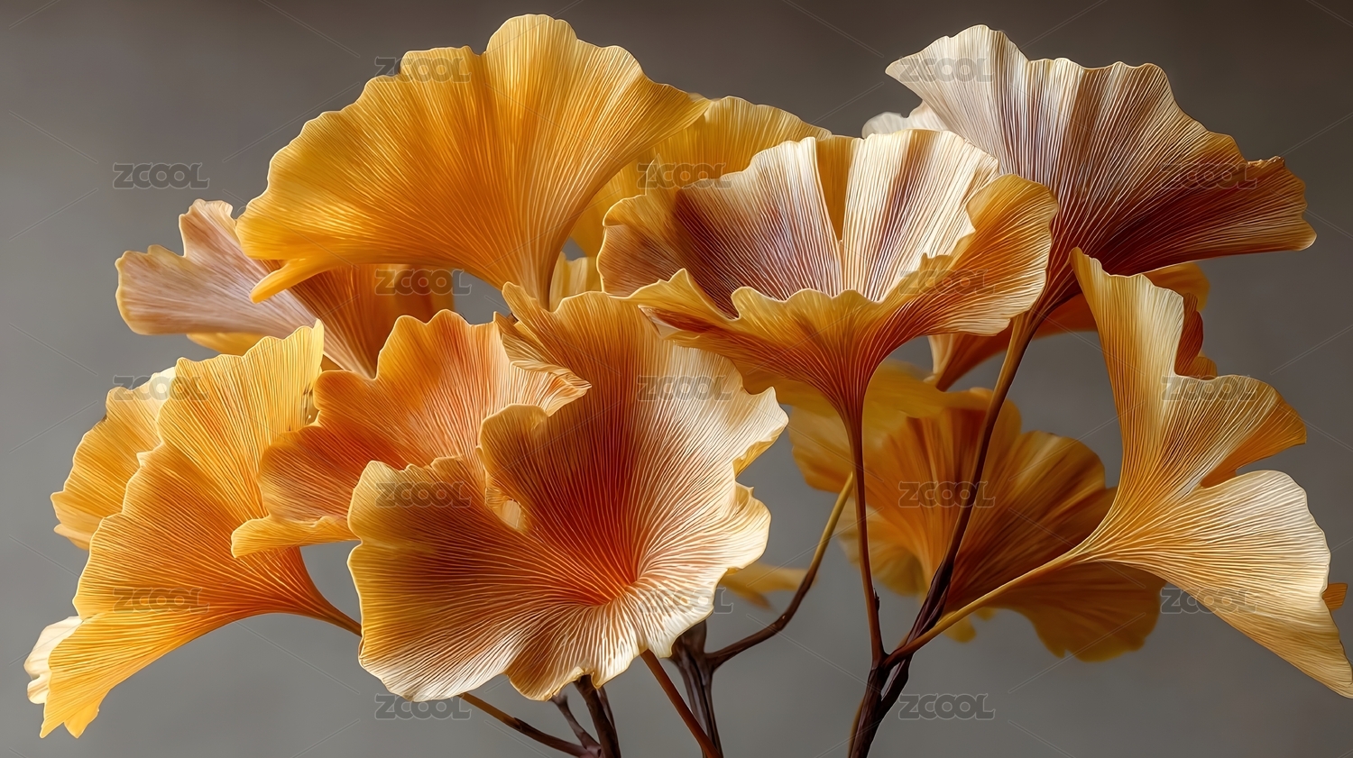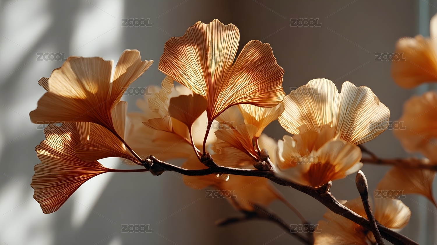 银杏,叶子,枝条,橙色,背景,自然,脉络,特写,植物,叶脉