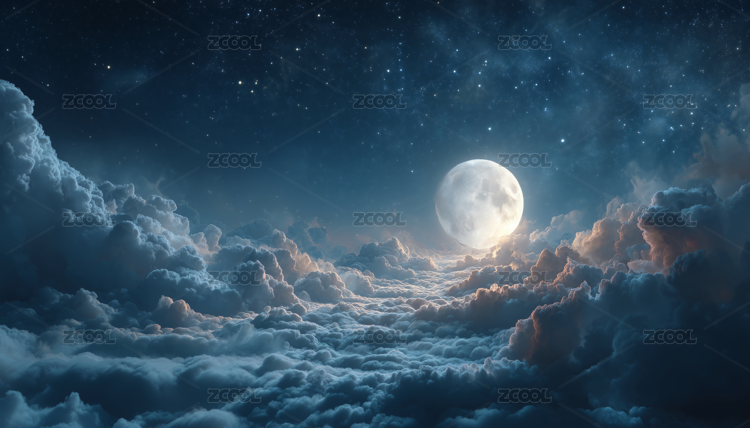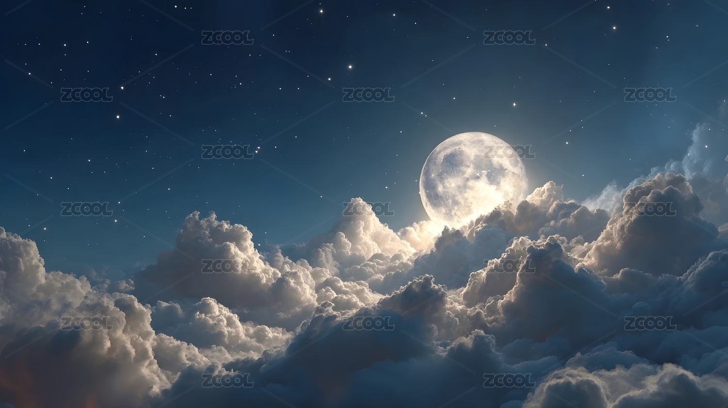 自然,云,天空,云朵,云彩,云层,云海,月亮,夜空,星星