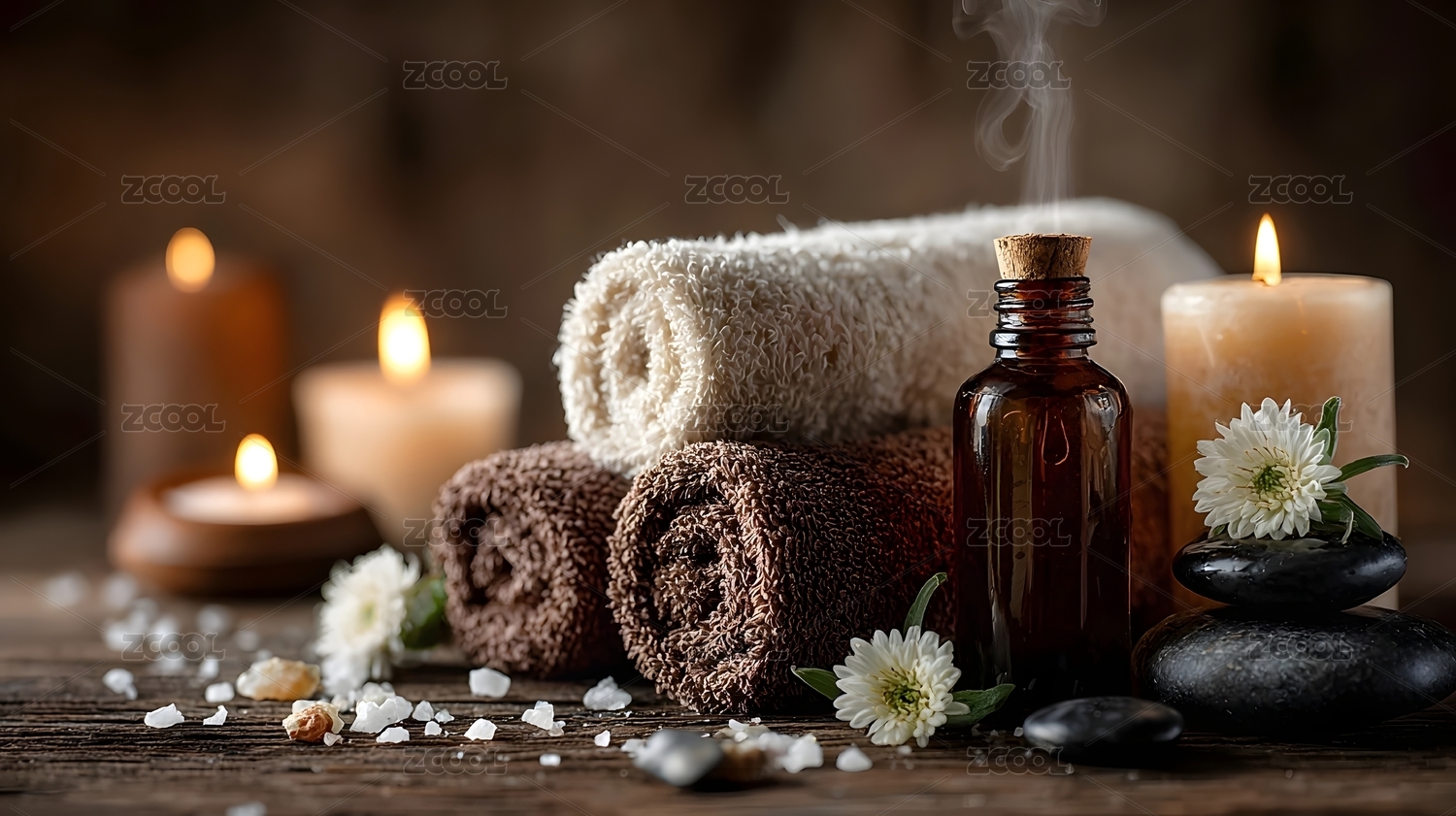 精油与毛巾的spa场景
