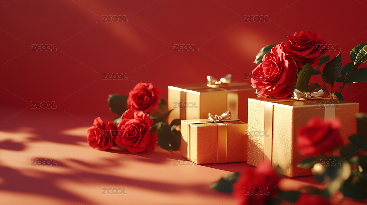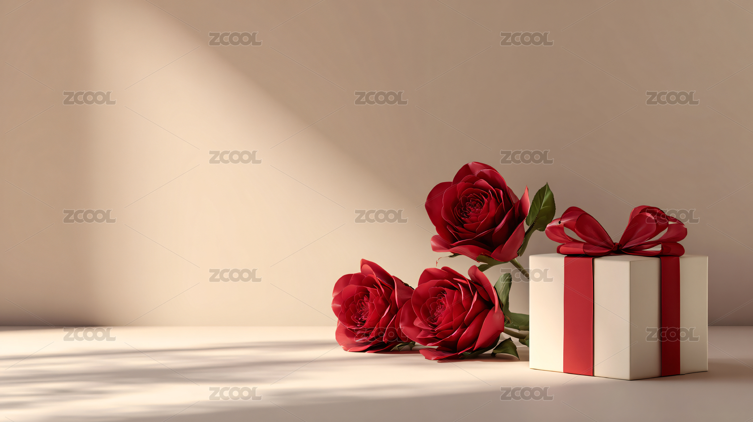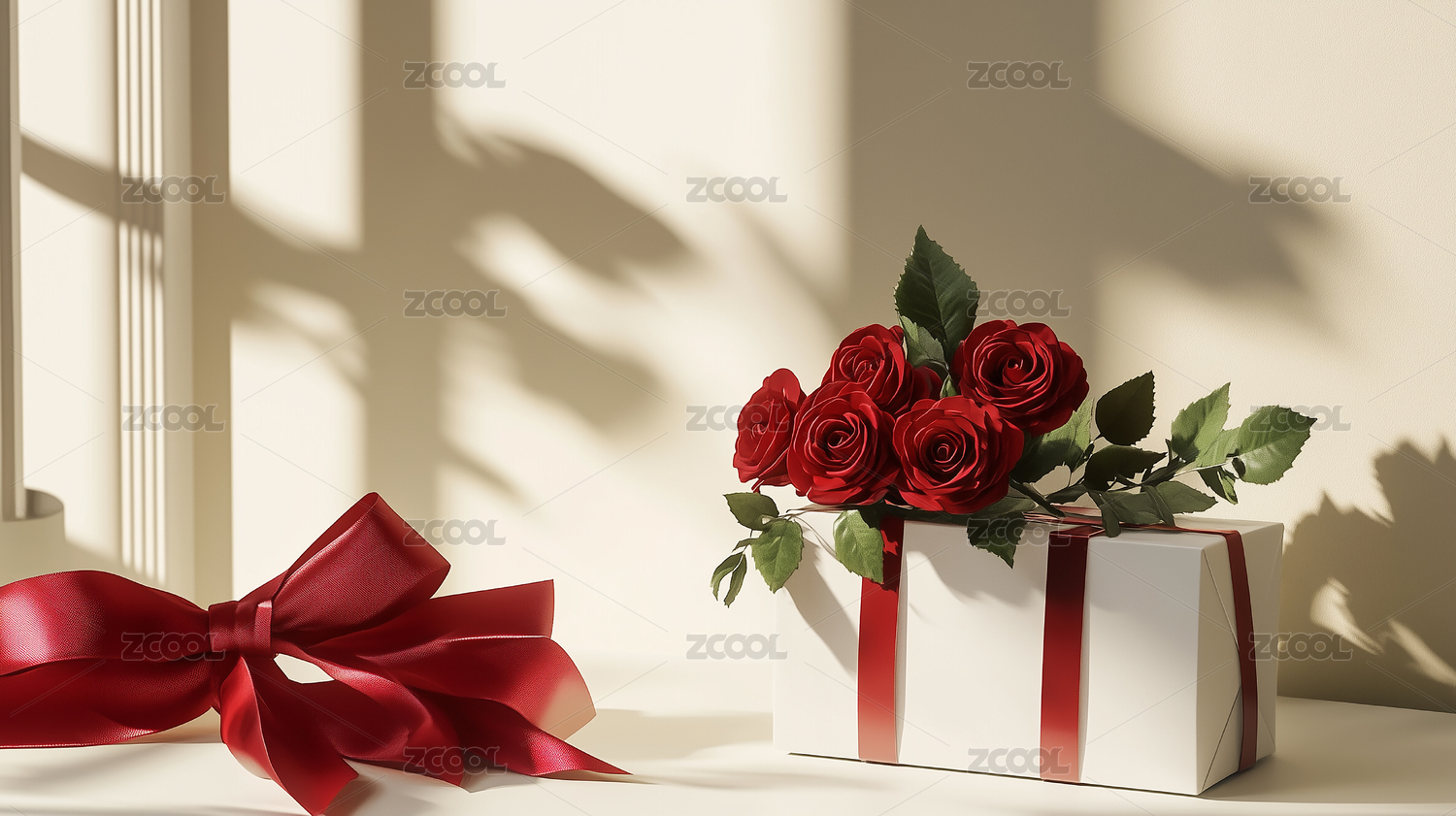 礼盒,红玫瑰,浅背景,艺术,插画,场景,元素,浪漫,创意,风格