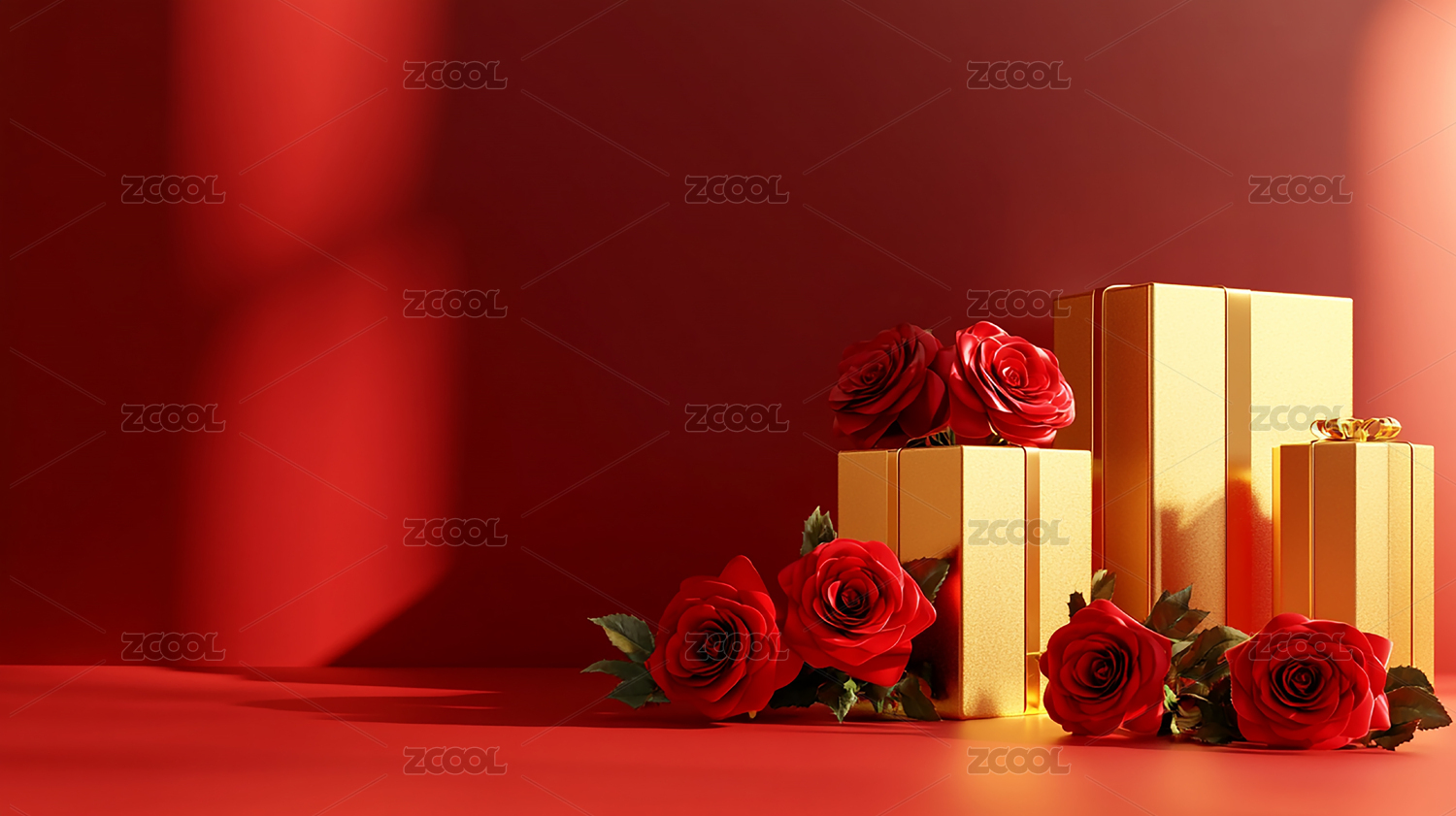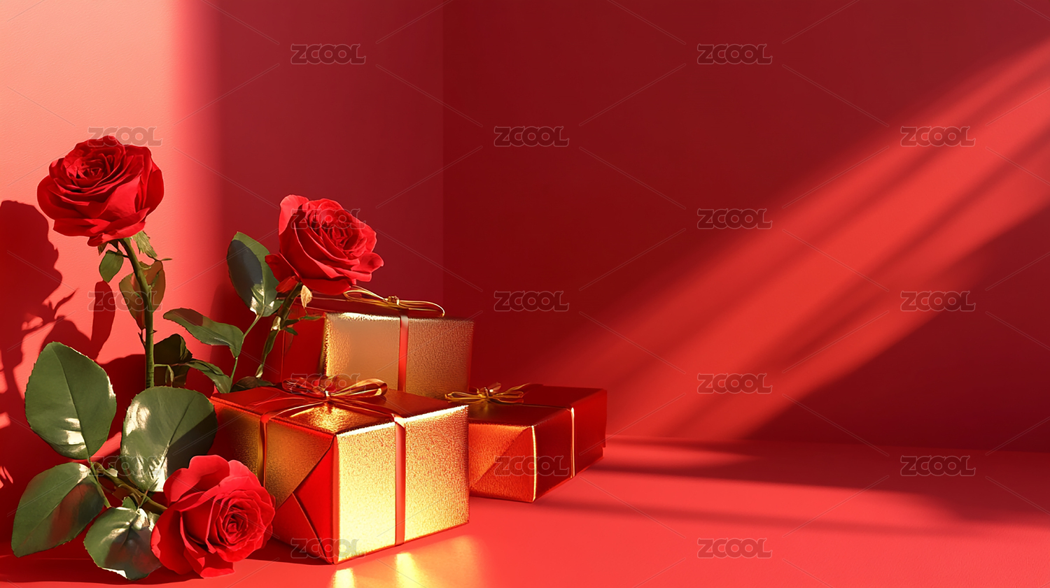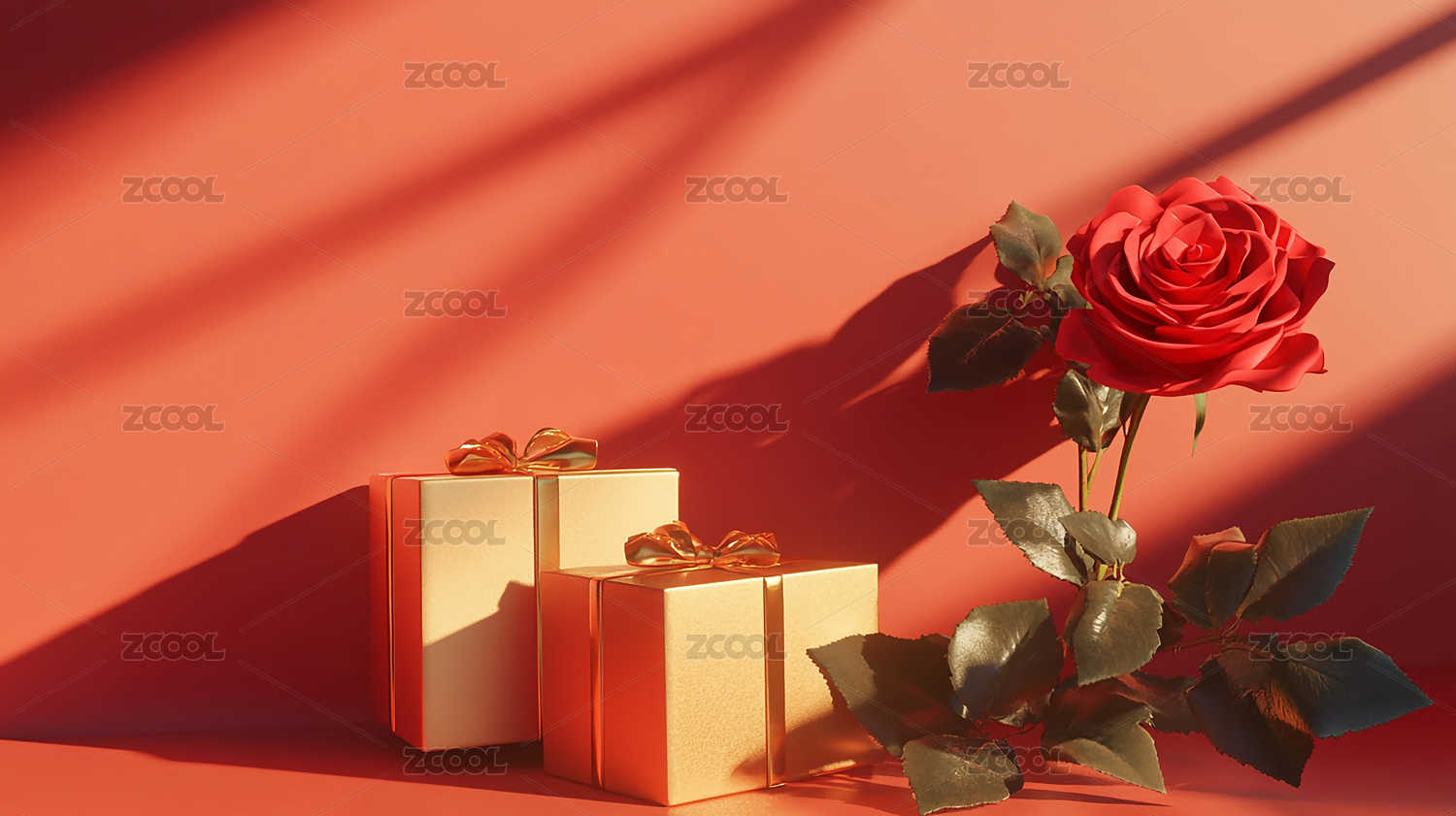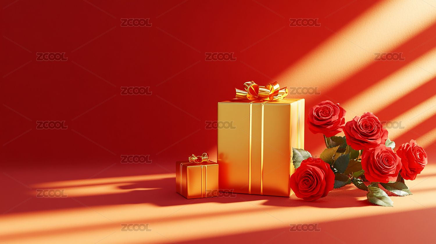 礼盒,红玫瑰,浅背景,艺术,插画,场景,元素,浪漫,创意,风格
