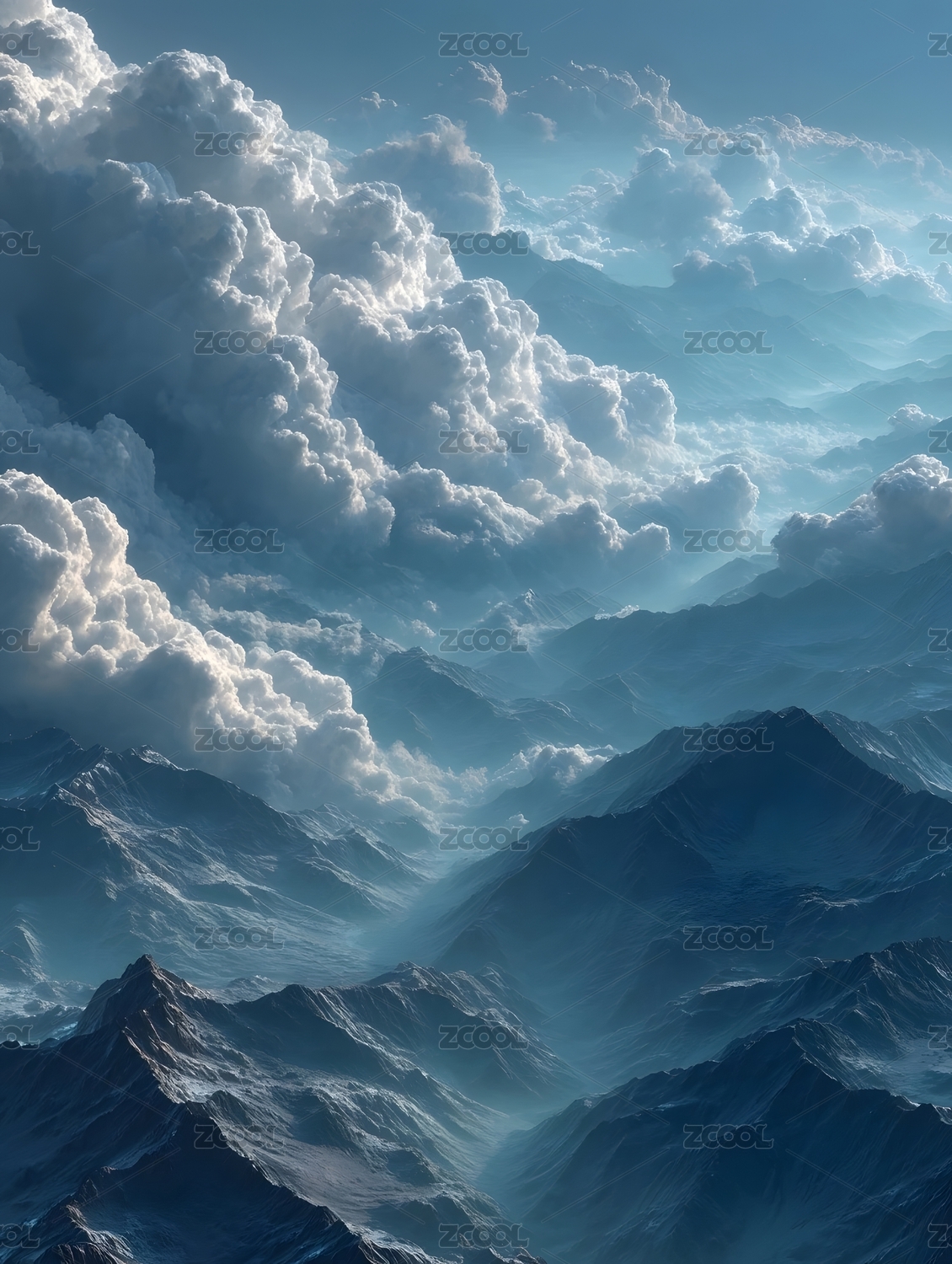 天空,蓝色,云海,山脉,云层,云朵,山峰,云雾,山峦,云涛
