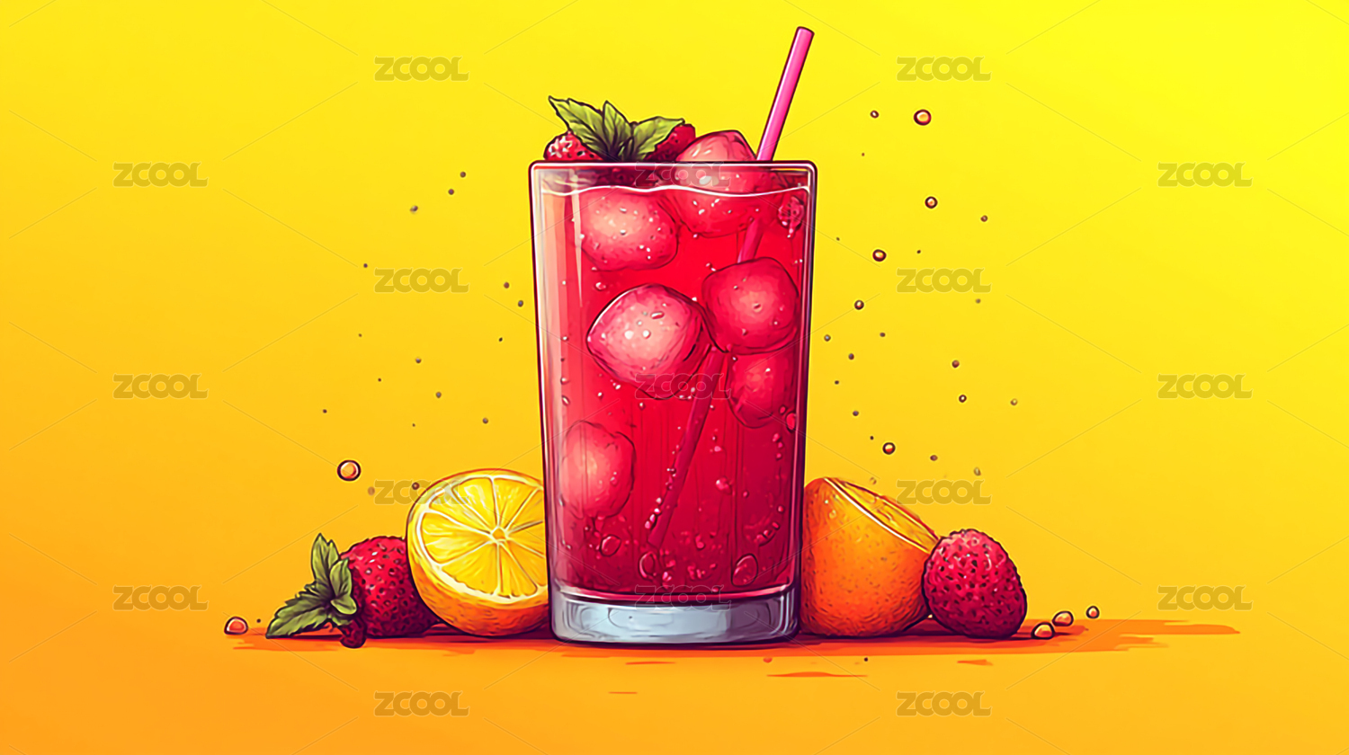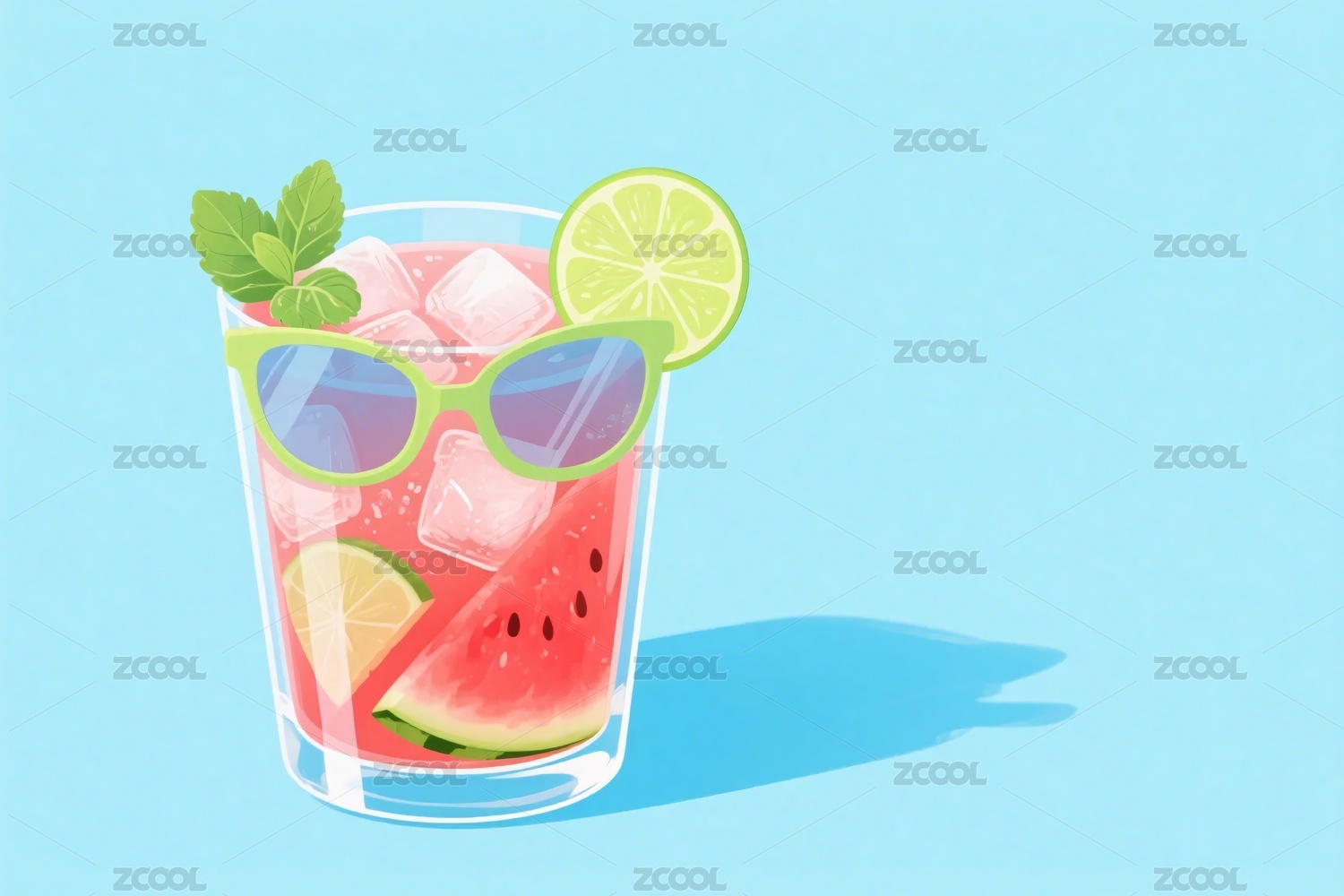 夏季水果茶饮料食品健康夏至节气清凉插画
