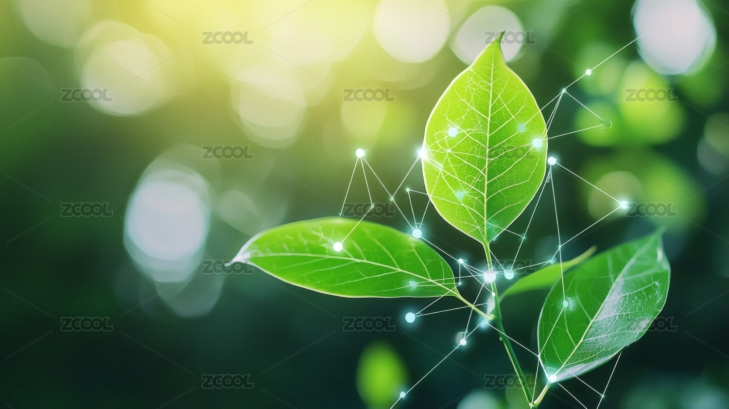自然,光影,科技,未来,绿叶,线条,网络,连接,反射