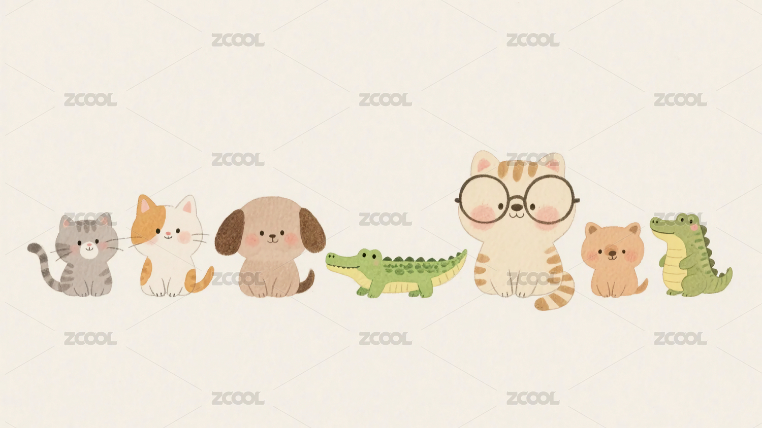 卡通彩色q版动物