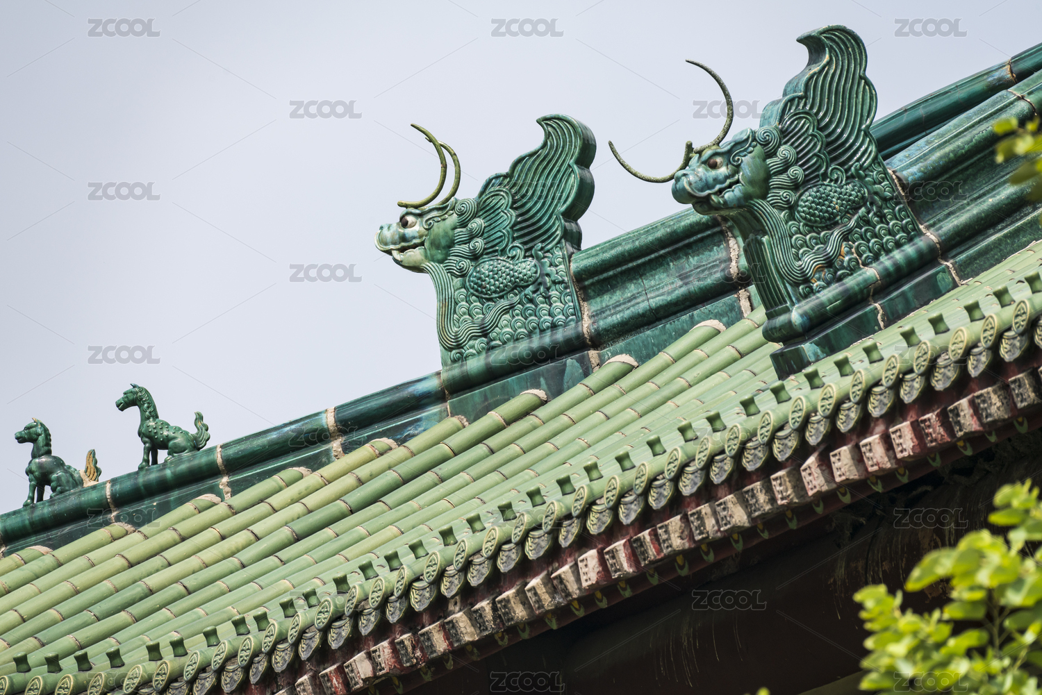 山西榆次老城城隍庙屋脊琉璃构建鸱吻