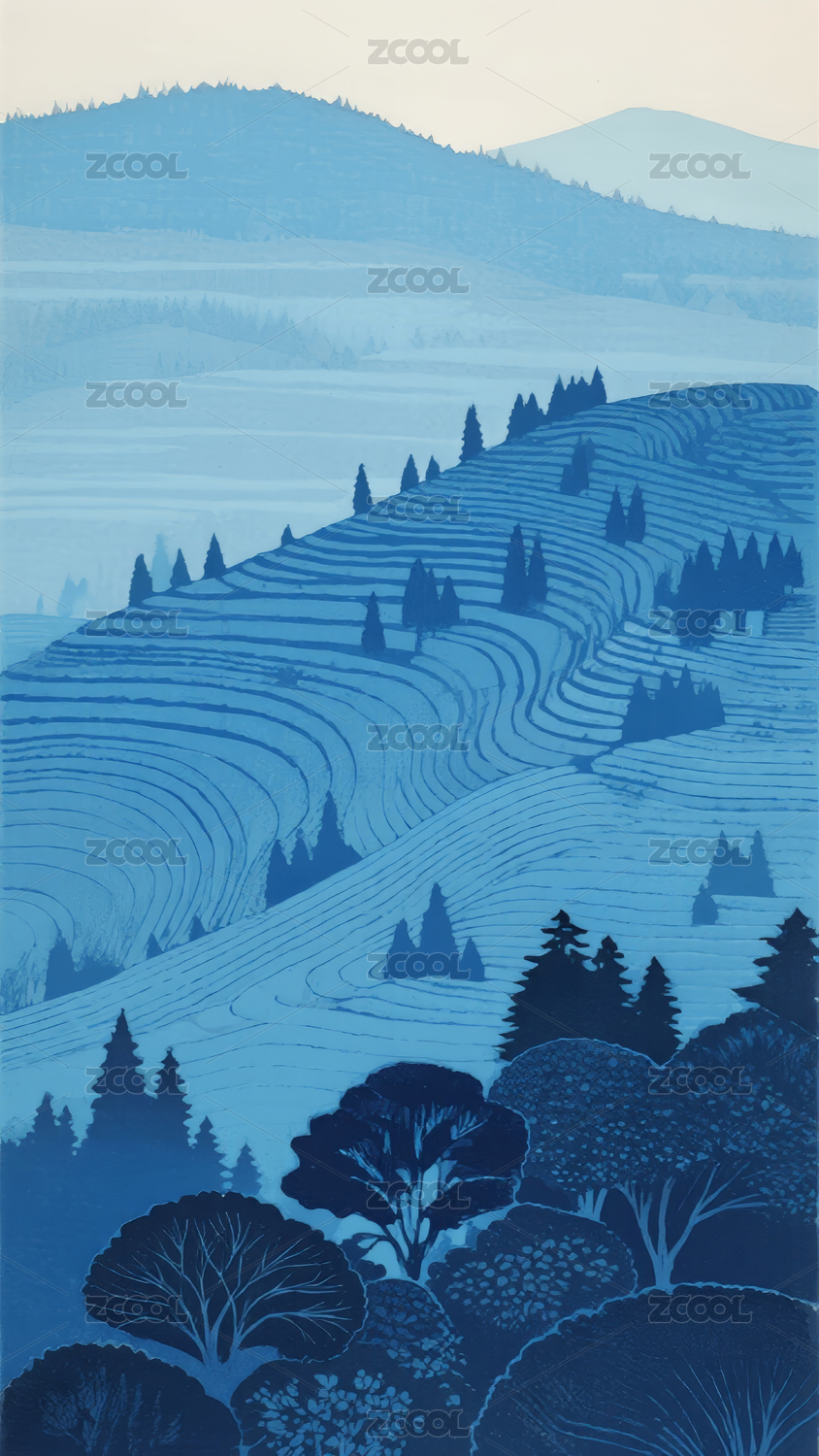 蓝色山林风景