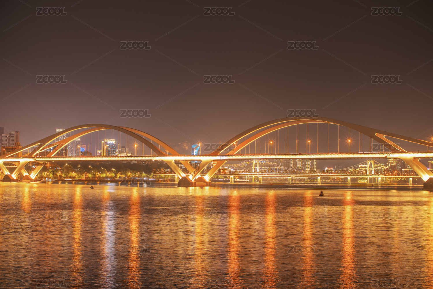 广州番禺新光大桥夜景灯光星芒江边倒影