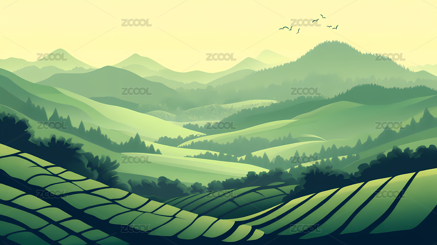 艺术, 自然, 生态, 树木, 田野, 村庄, 小路, 宁静, 乡村, 远山