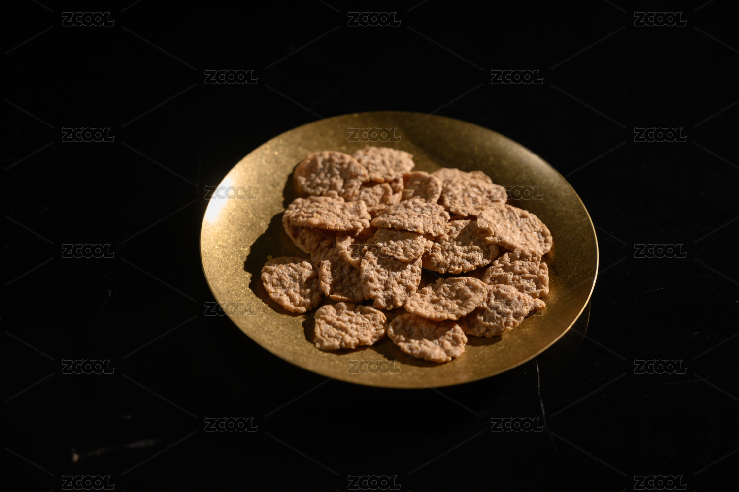桌面上的盘子里的美味可口的香葱酥
