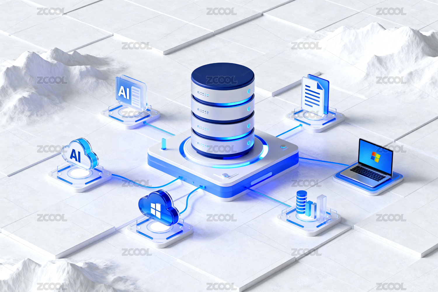 AI芯片,大数据,模型,云计算,数据云,蓝色,3D,图标,背景,云朵