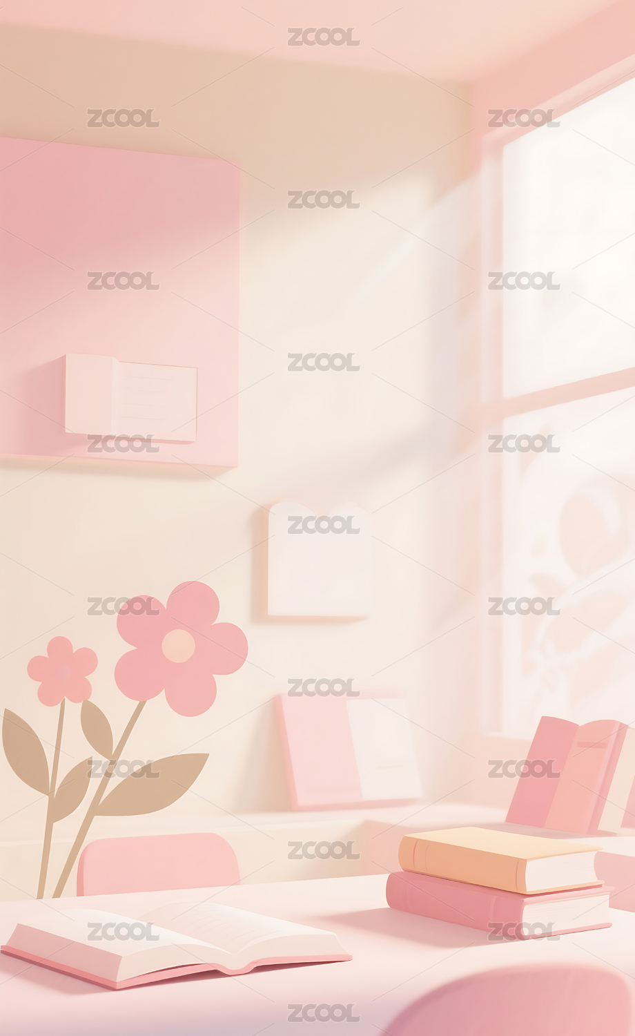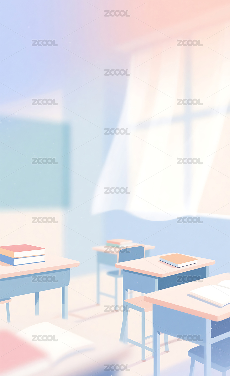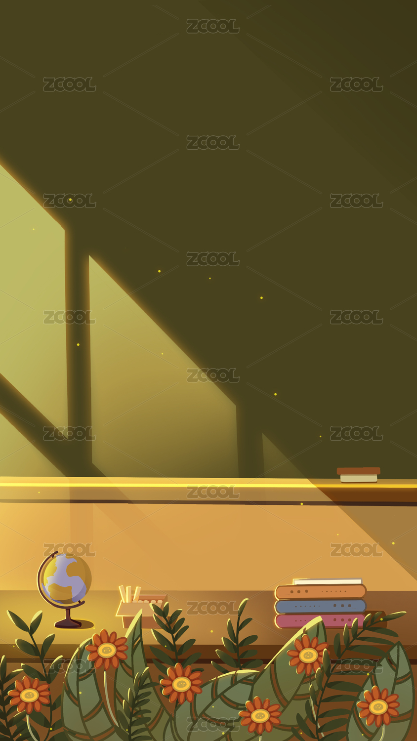 插画,扁平风,室内,教室,书桌,书本,背景,白昼,光影