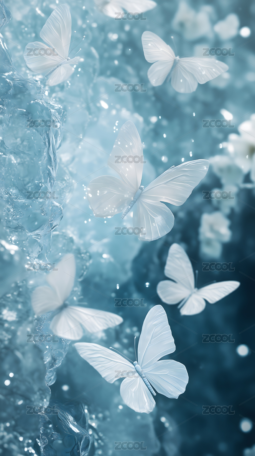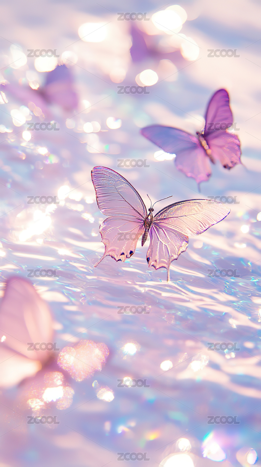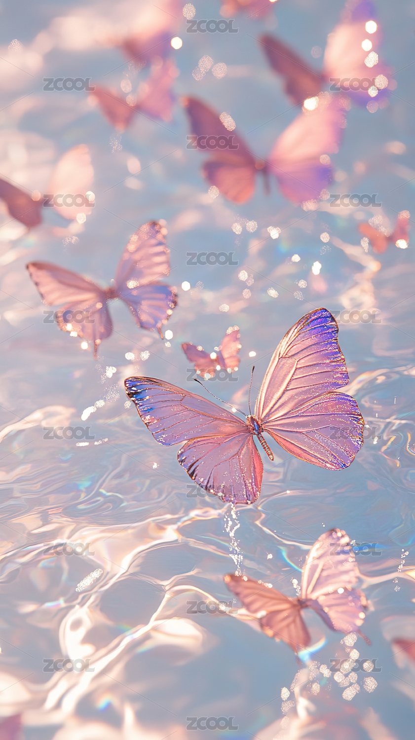 彩蝶水纹梦幻调自然场景