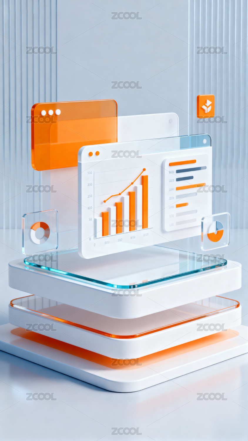 橙色科技数据图表概念场景智能背景3D竖屏