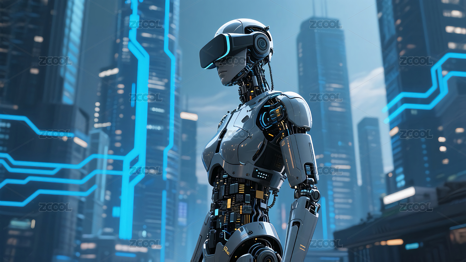 未来,城市,赛博朋克,机器人,人工智能,守护,背景,三维,空间,太空
