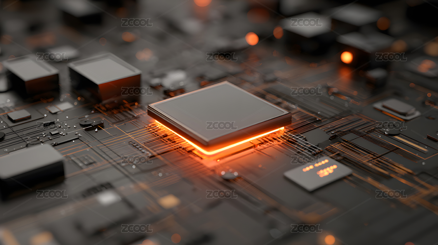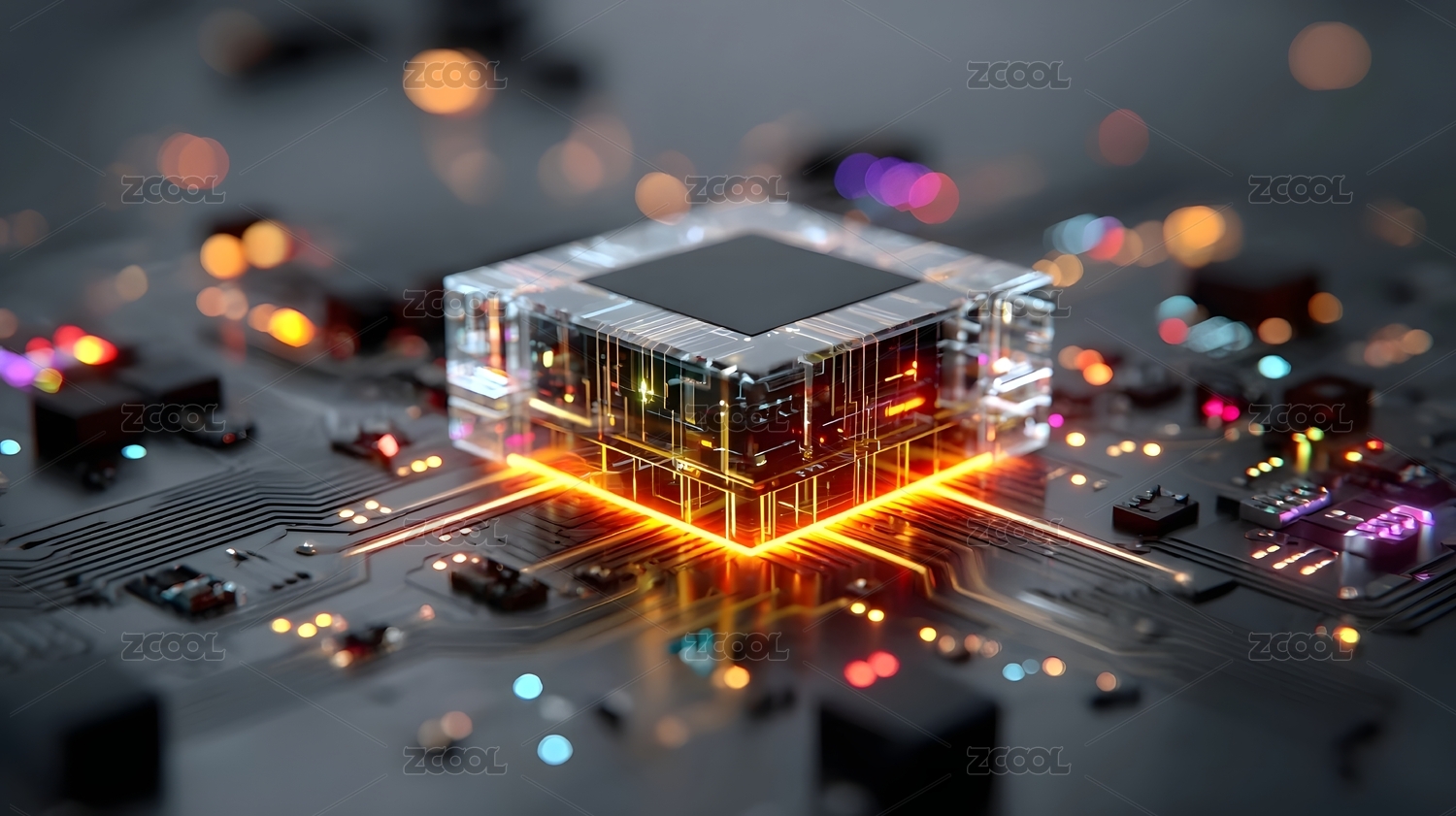现代,黄色,科技,光效,红色,黑色,发光,方形,芯片,电路