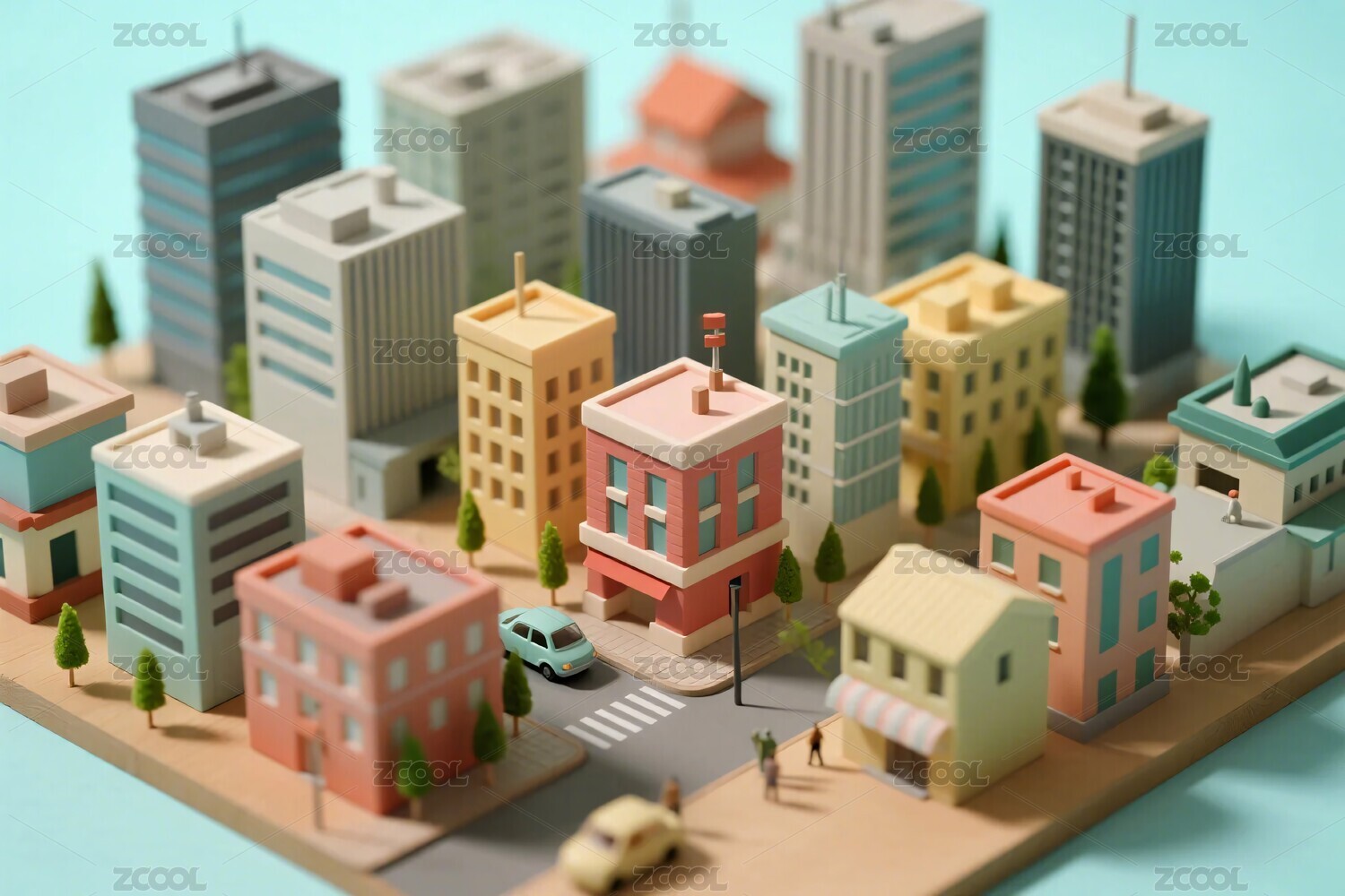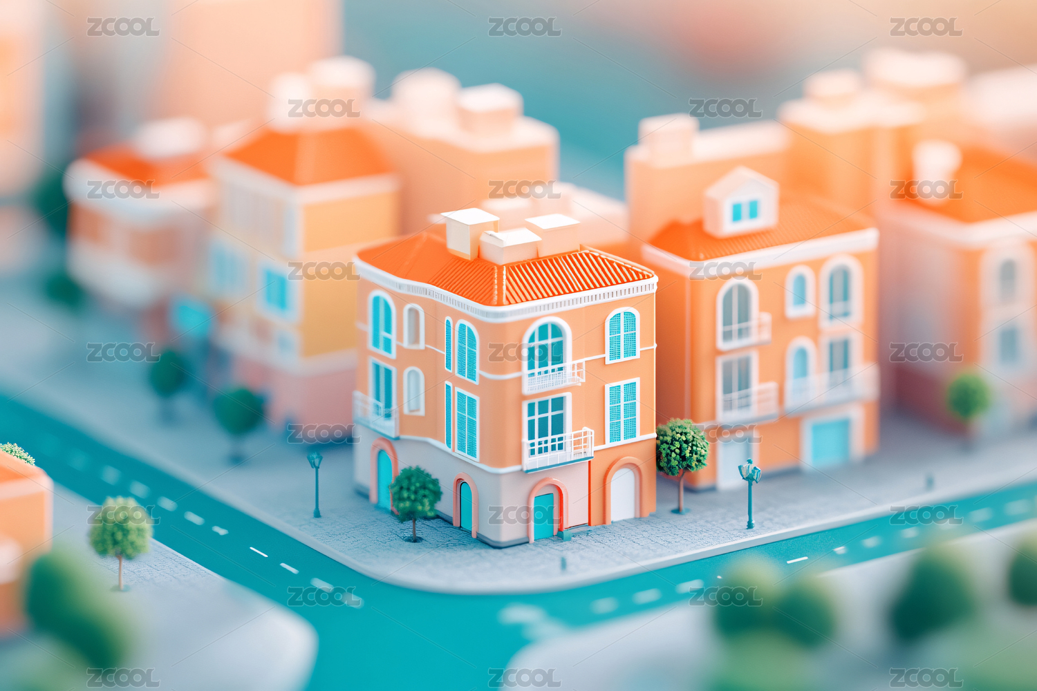 房屋,汽车,工厂,街道,树木,插画,卡通,场景,模型,元素