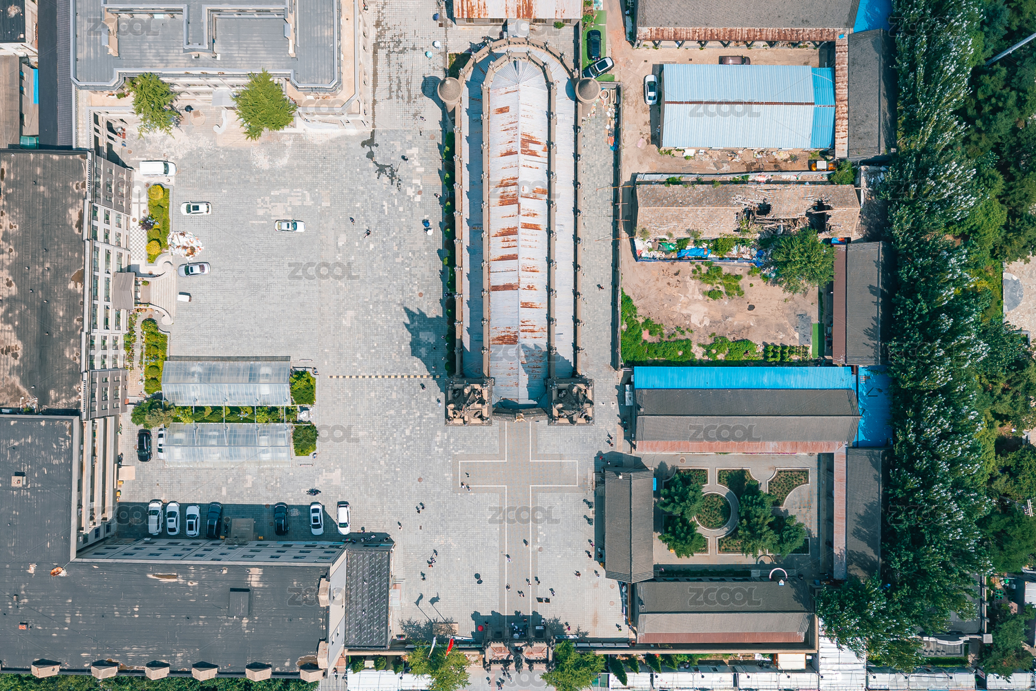 航拍中国山东青岛圣弥厄尔教堂风光图