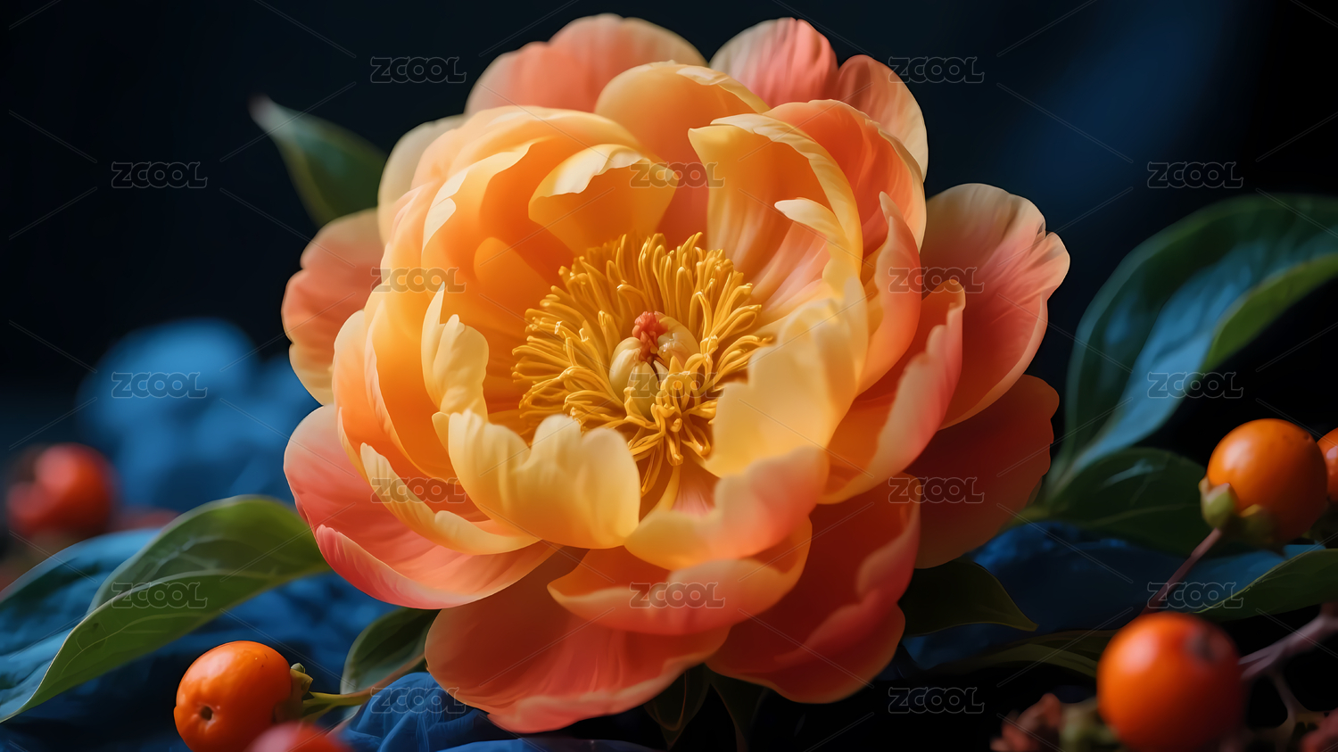 背景,橙色,黄色,绿色,红色,花朵,花瓣,叶子,鲜艳,温暖
