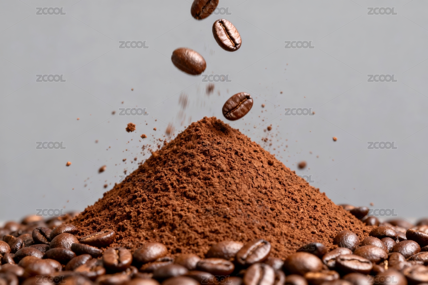 白色,咖啡粉,咖啡豆,深棕,纯色,特写,香浓,原料,质感,静物