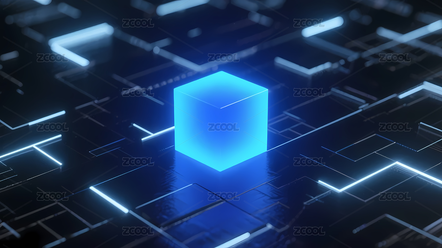 蓝色光线立方体与网格背景