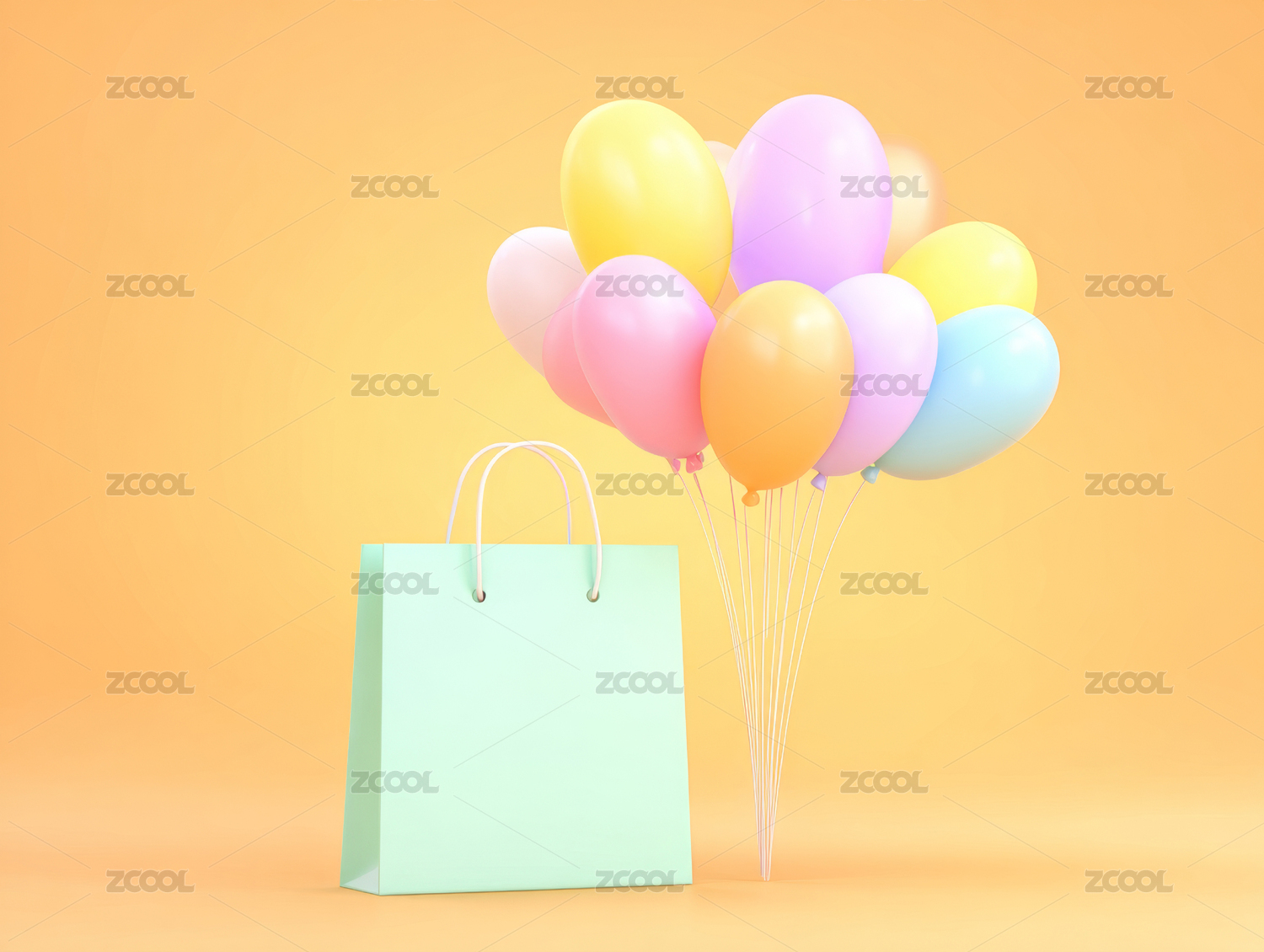 彩色气球与购物袋