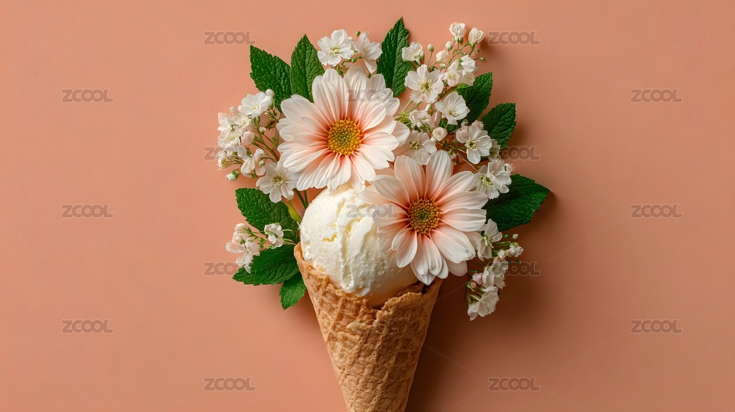 花朵,背景,花枝,花束,花瓣,叶子,装饰,甜筒,冰淇淋,花心