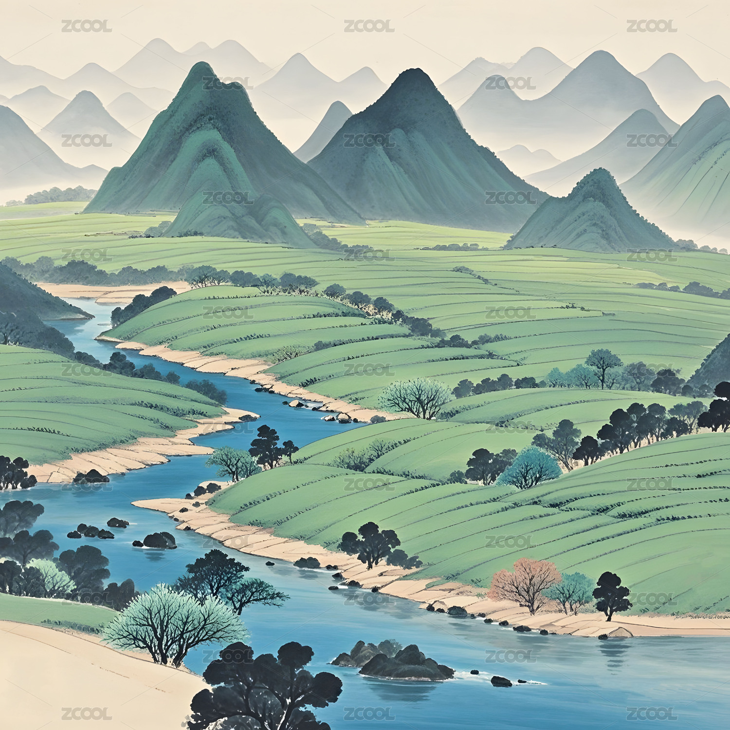 山水,河流,山脉,森林,平原,自然,风景,青山,绿树,植被