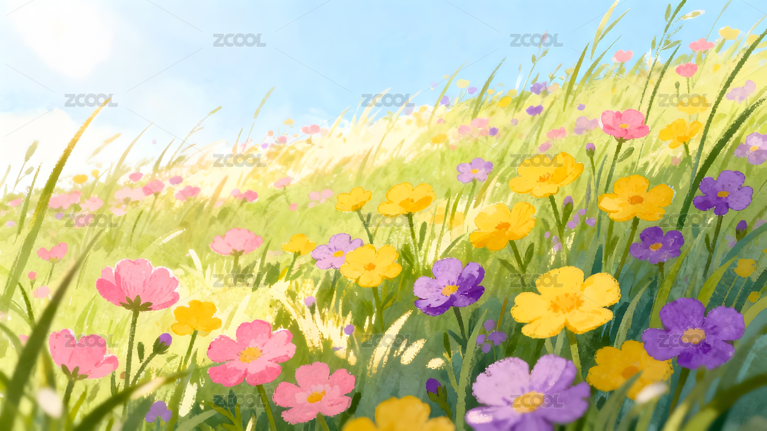 花草,田野,插画,野花,麦穗,自然,植物,花朵,绘画,艺术