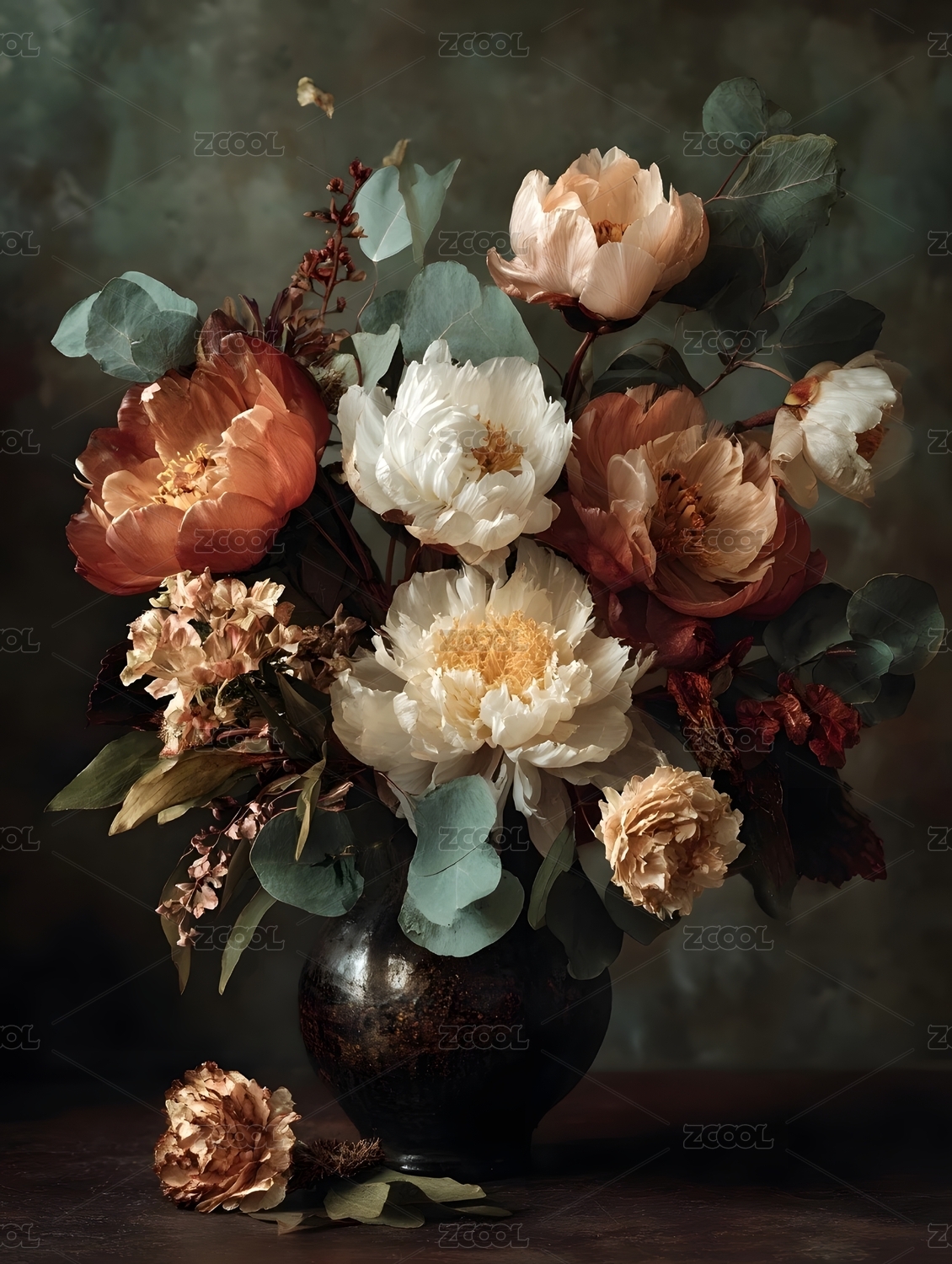 美丽盛开的鲜花玫瑰康乃馨插花与花瓶