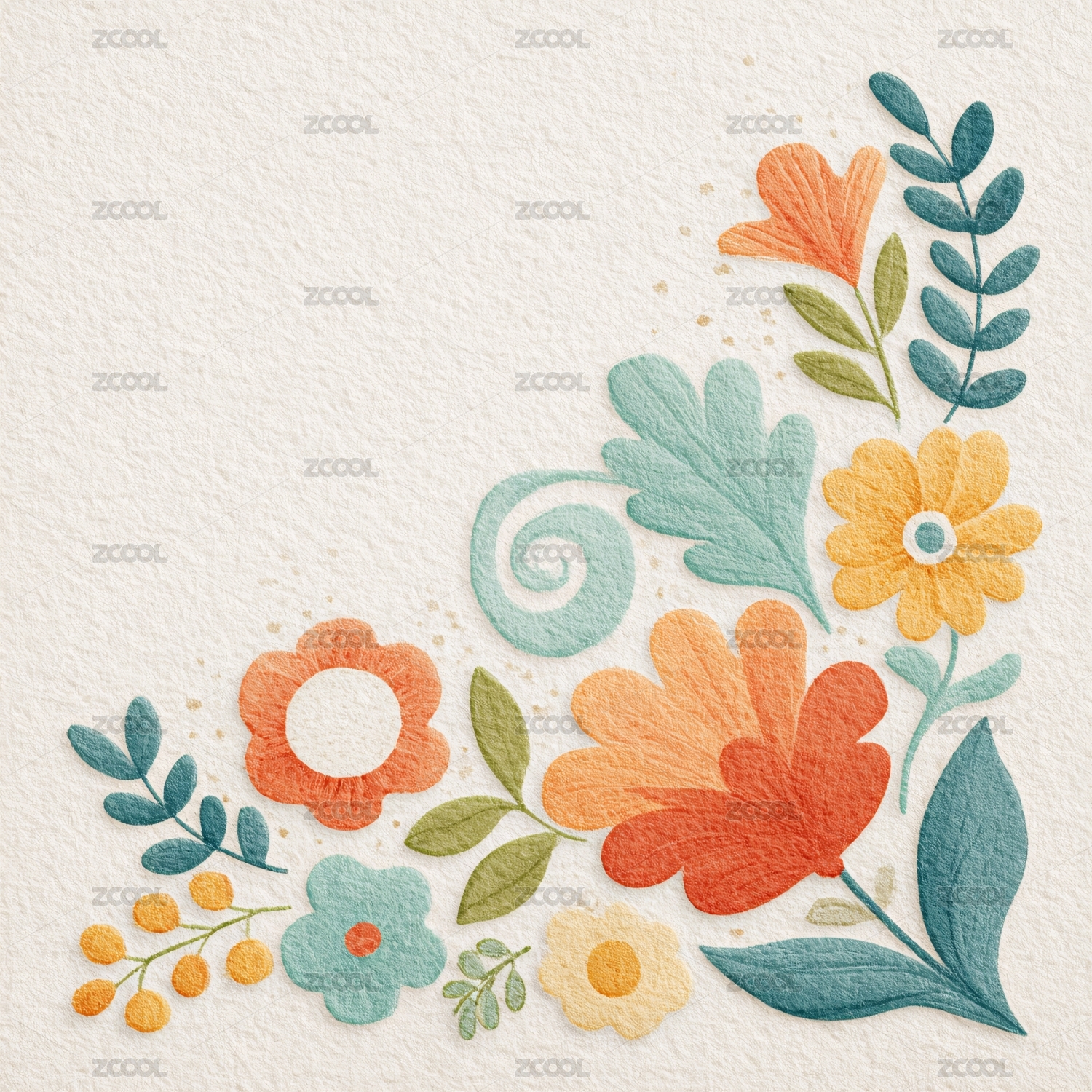 水彩,花卉,插画,橙色,红色,蓝色,绿色,花瓣,叶子,艺术