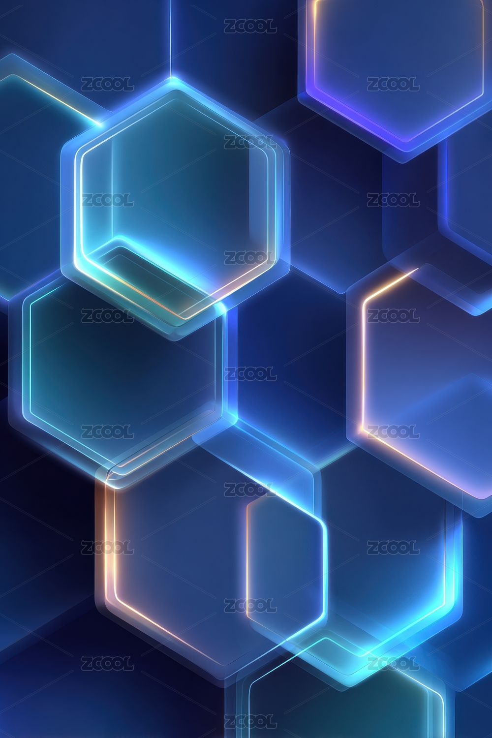 带有科技感的六边形蜂巢蜂窝形状的网络阵列