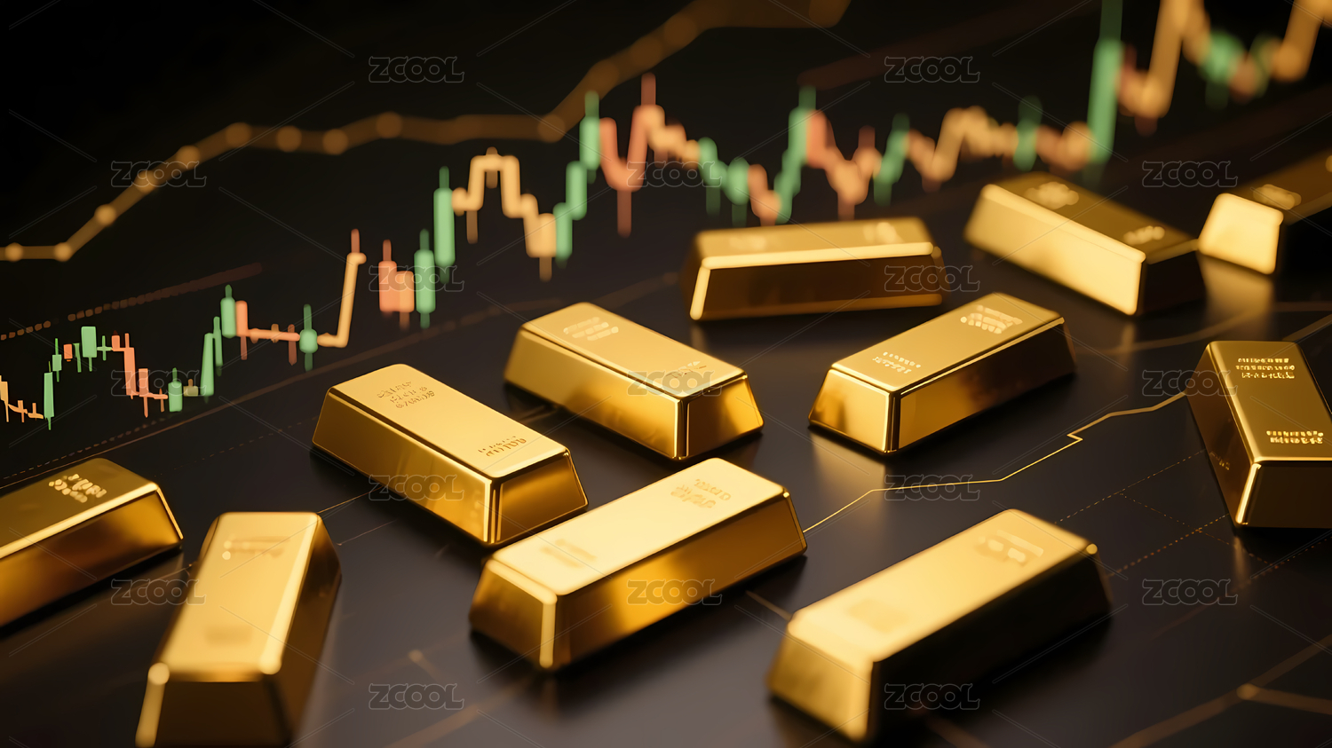 金色金条叠加在金融图表上