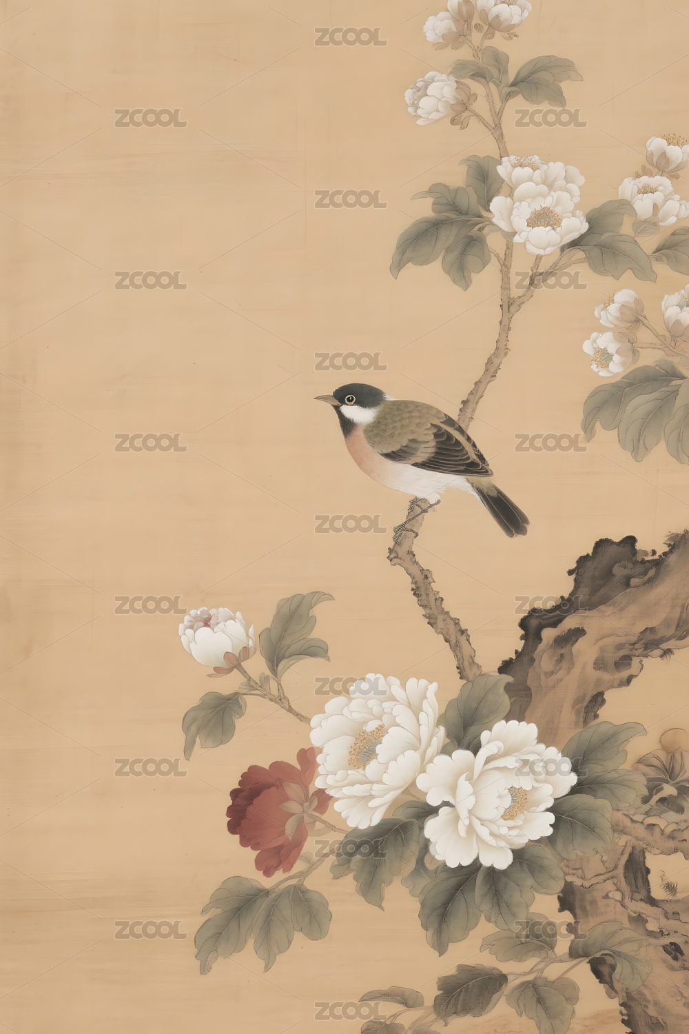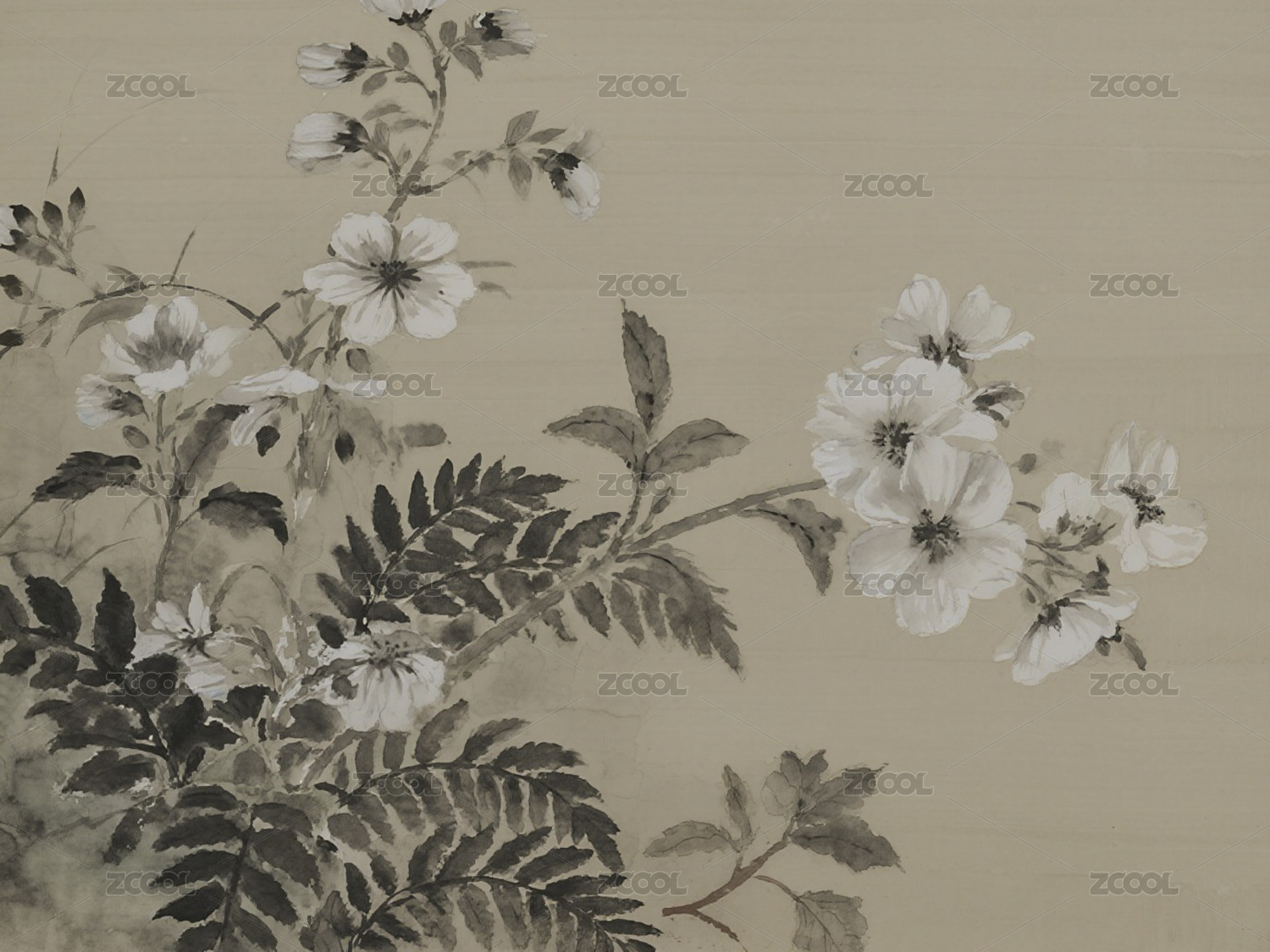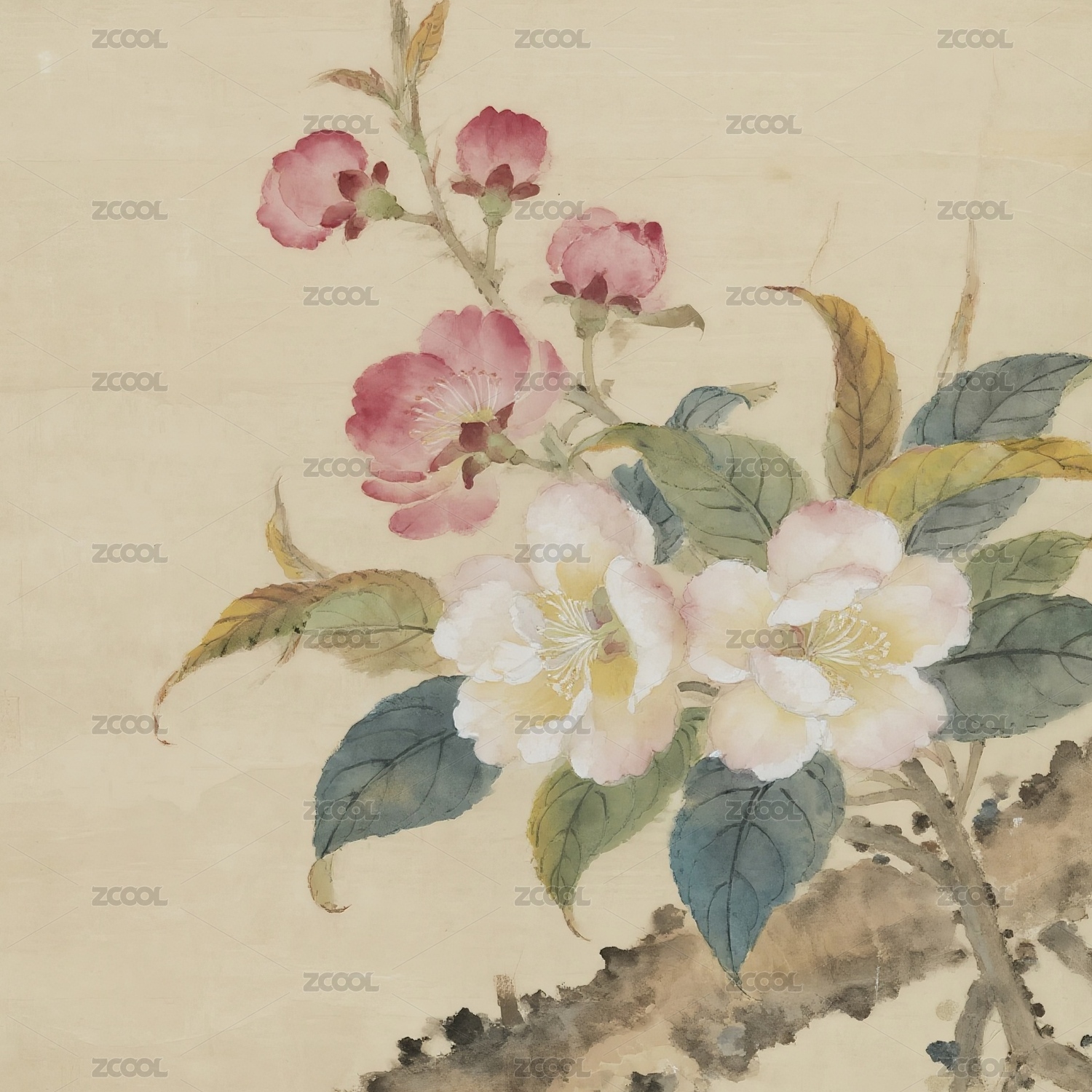 自然, 艺术, 绘画, 传统, 细腻, 背景,花朵, 绿叶, 和谐, 美丽
