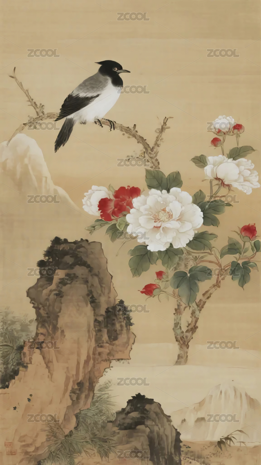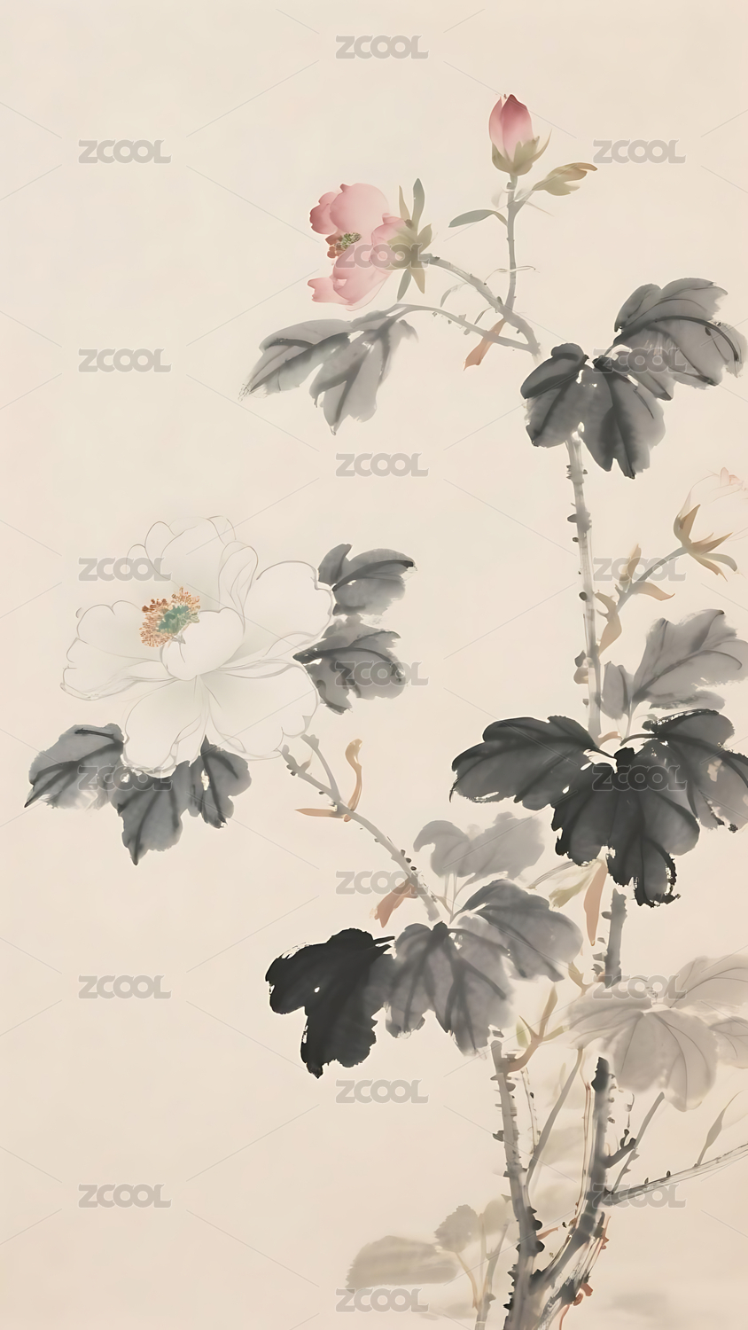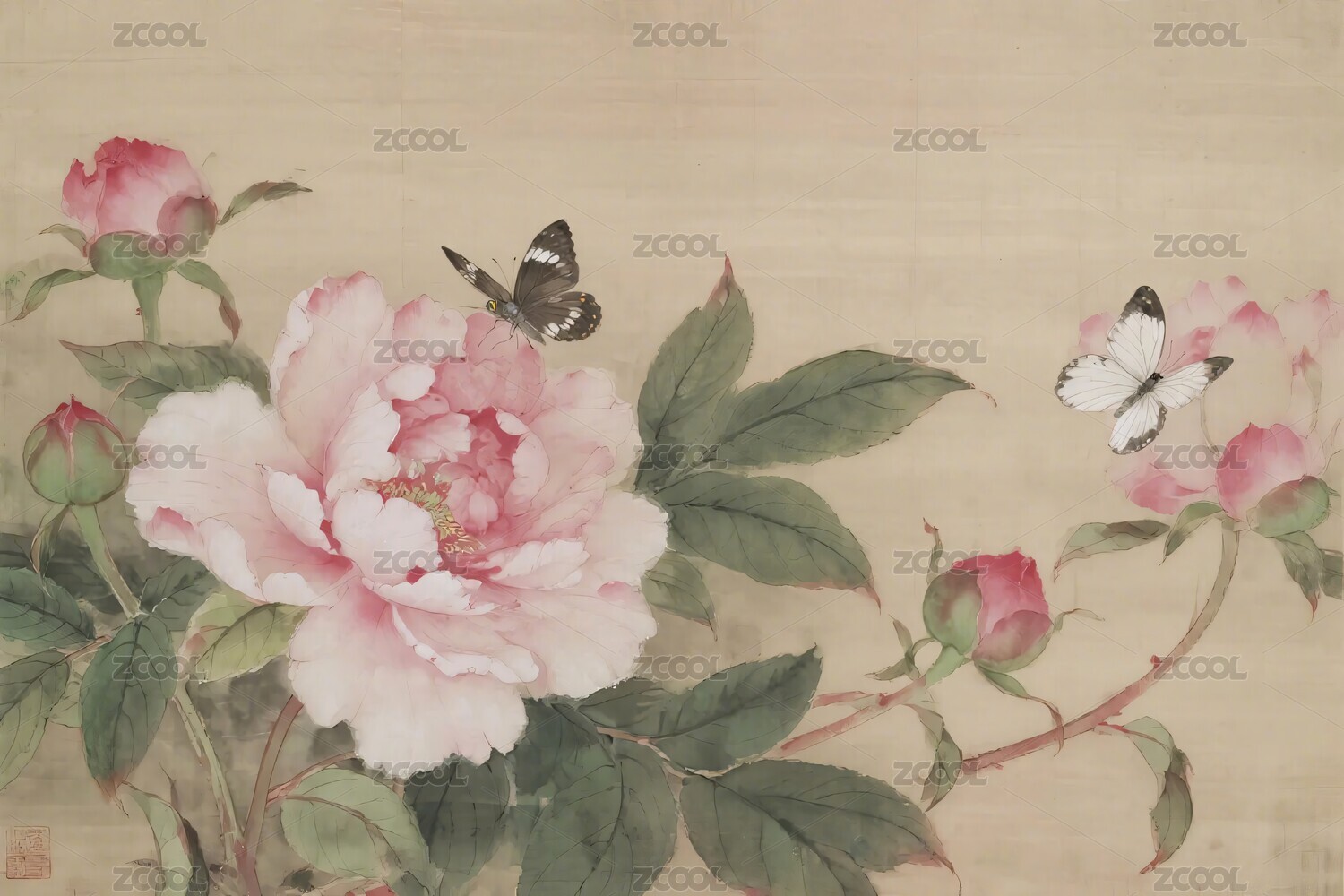 自然, 艺术, 绘画, 传统, 细腻, 背景,花朵, 绿叶, 和谐, 美丽
