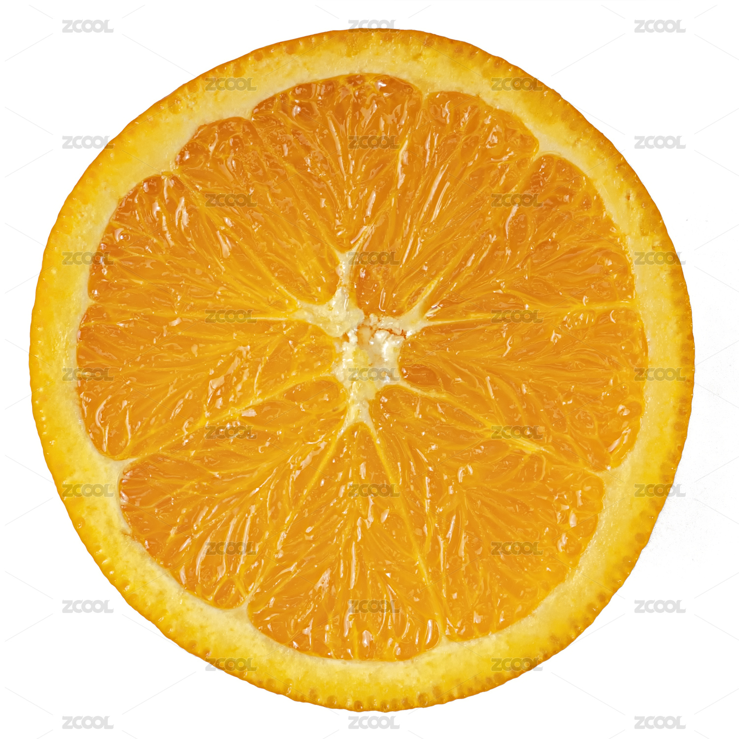 新鲜的水果橙子切面与白色背景