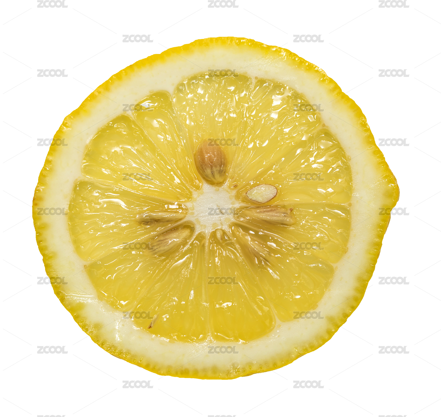 一片新鲜的黄色柠檬切片