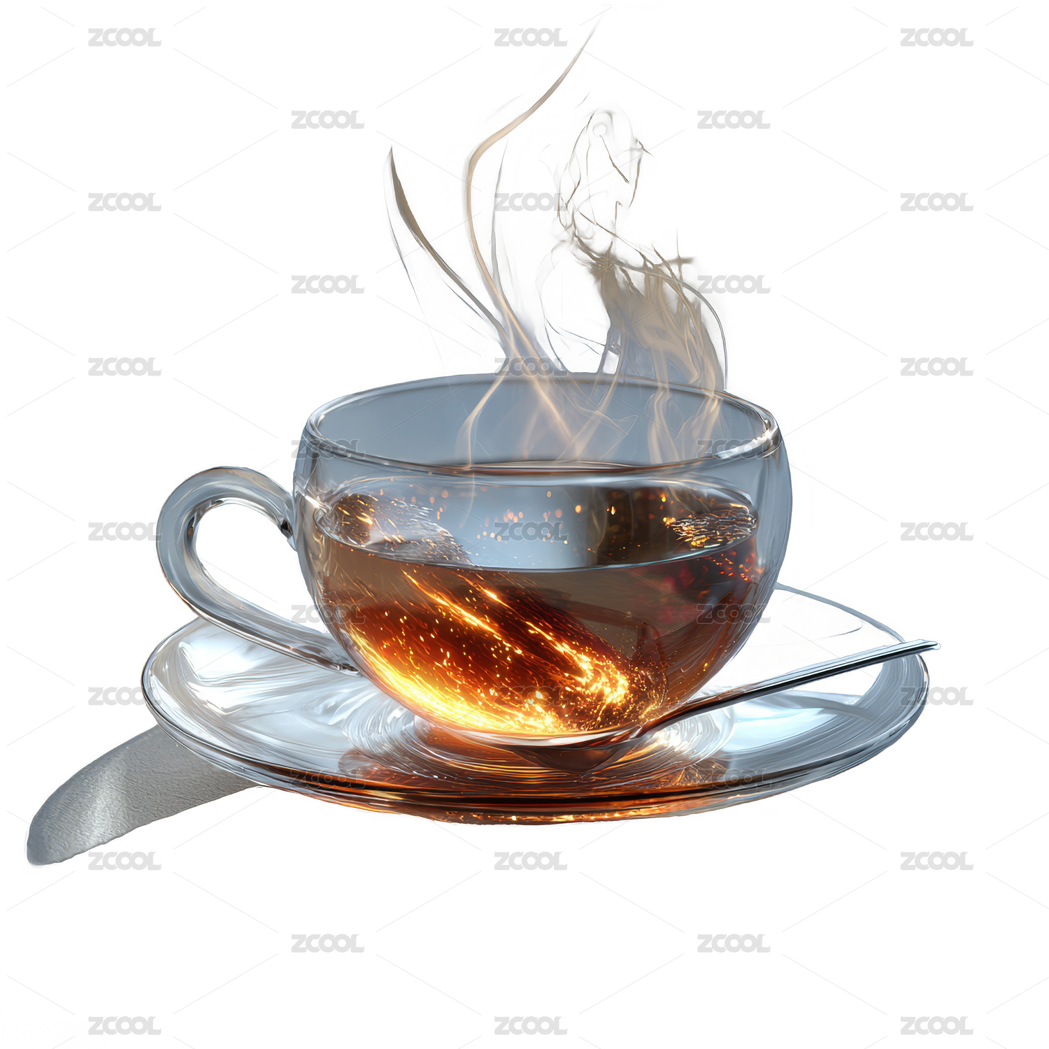 白底,元素,绿叶,饮品,热茶,玻璃杯,茶饮,透明杯,热饮,茶香