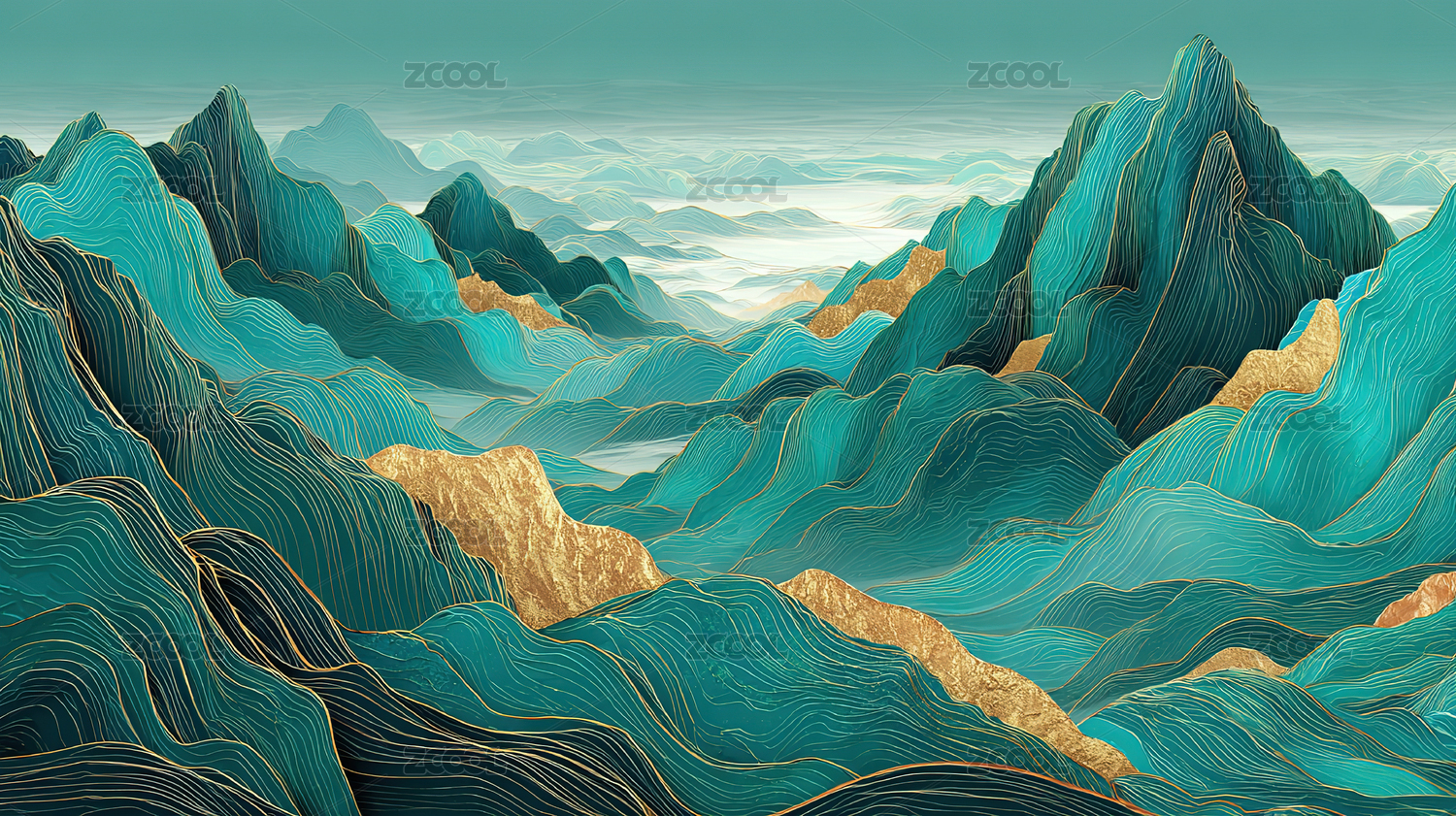 蓝色,线条,艺术,云雾,自然,风景,远山,近景,纹理,景观