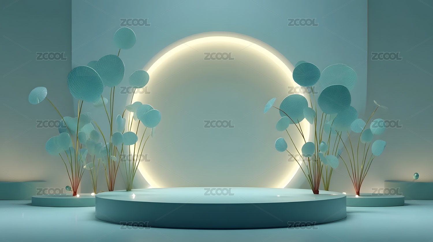 灯光,植物,绿色,背景,艺术,设计,现代,简约,几何,白色