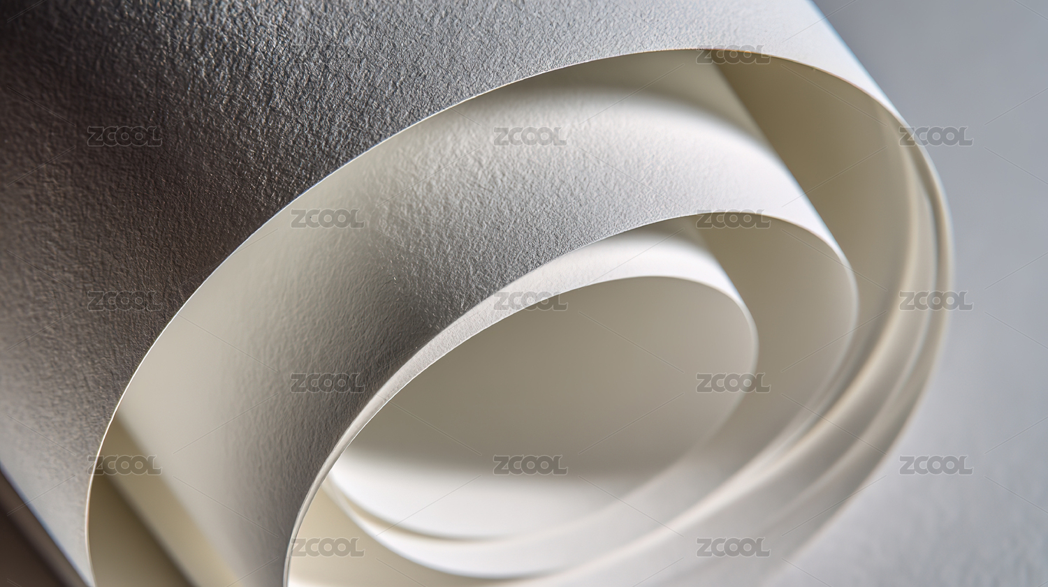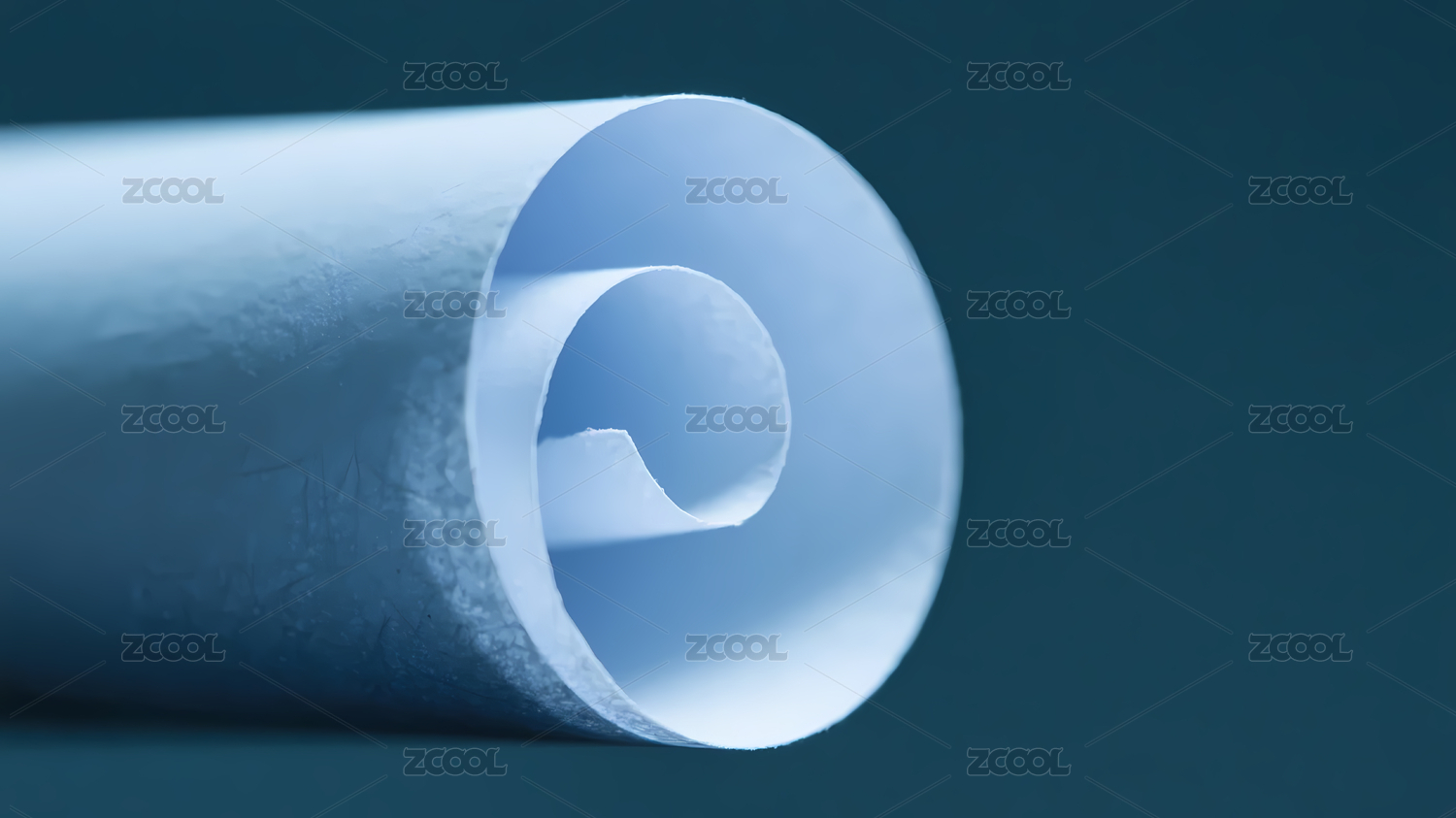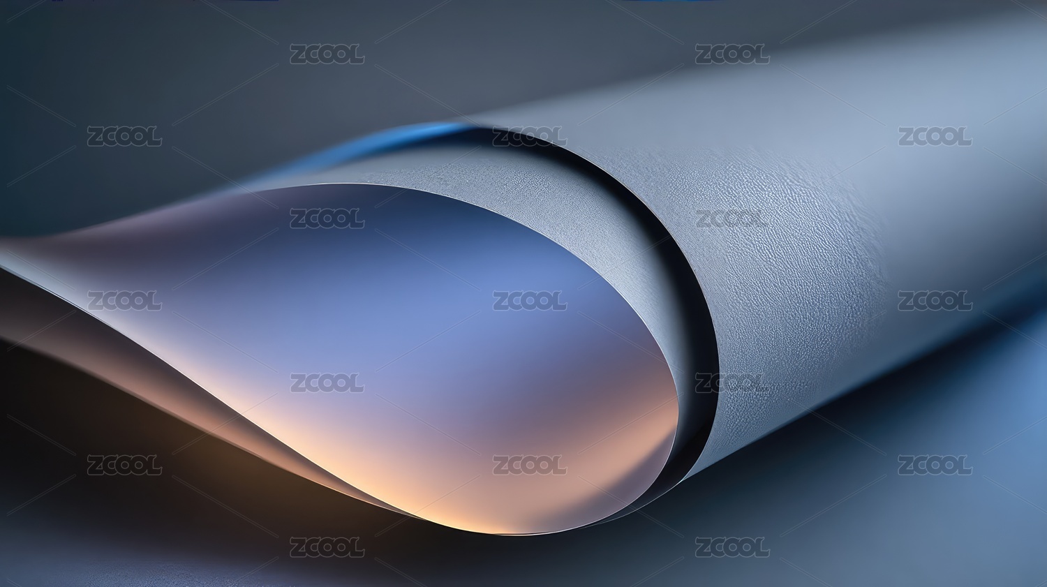 蓝色的纸张卷曲呈现出光影变化和立体感