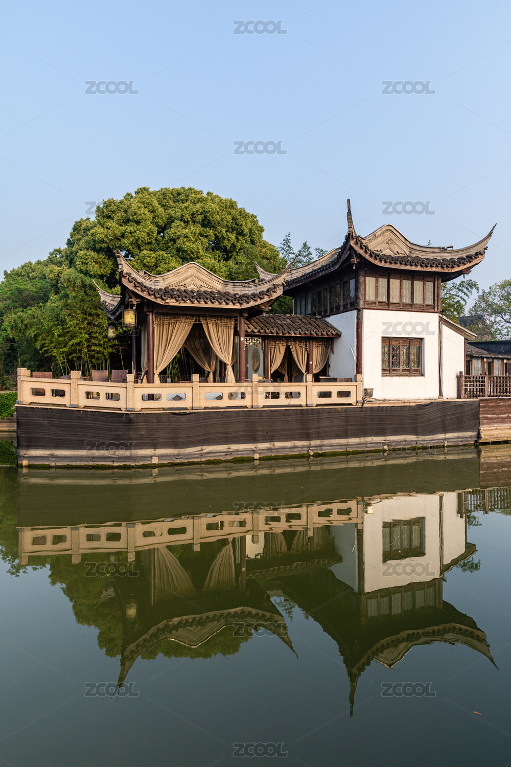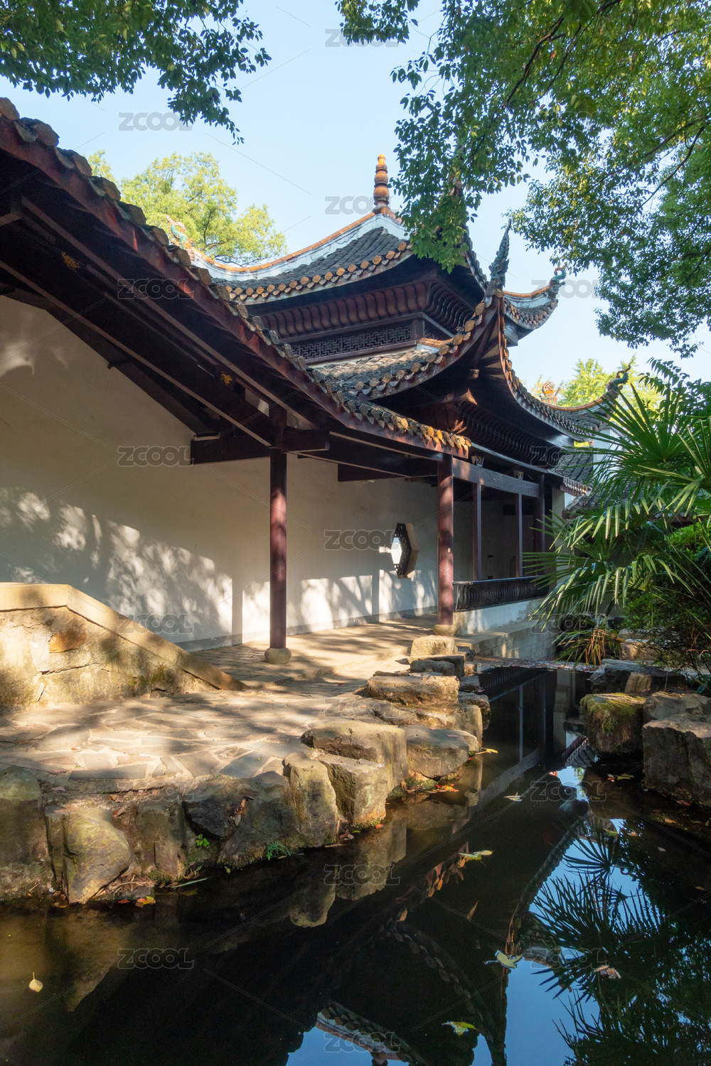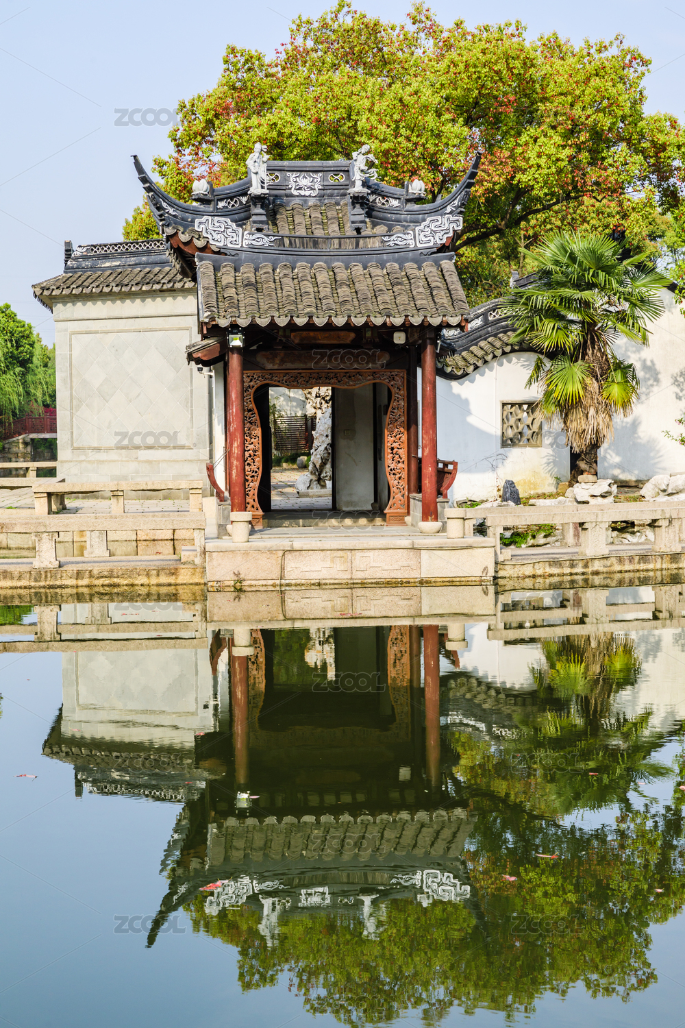 晴朗的午后,扬州瘦西湖江南园林建筑