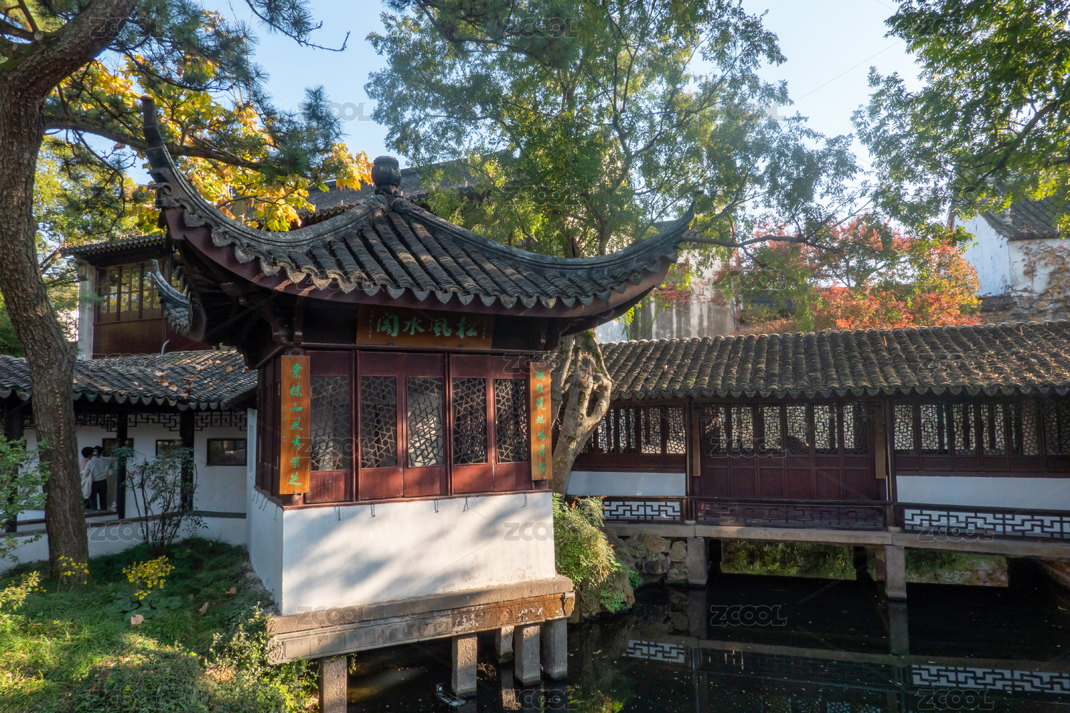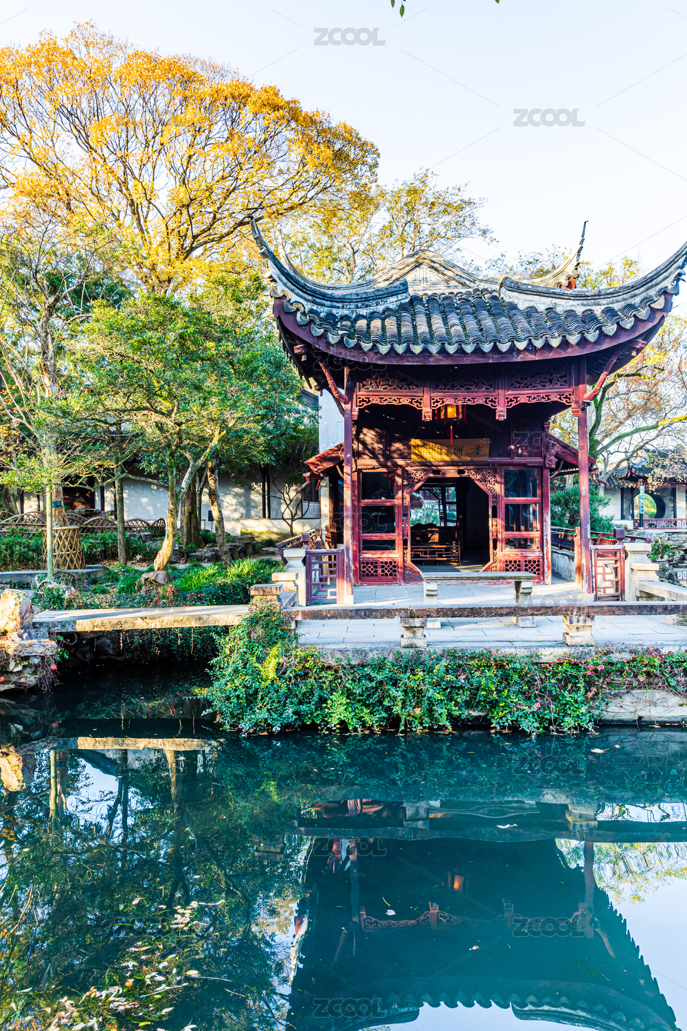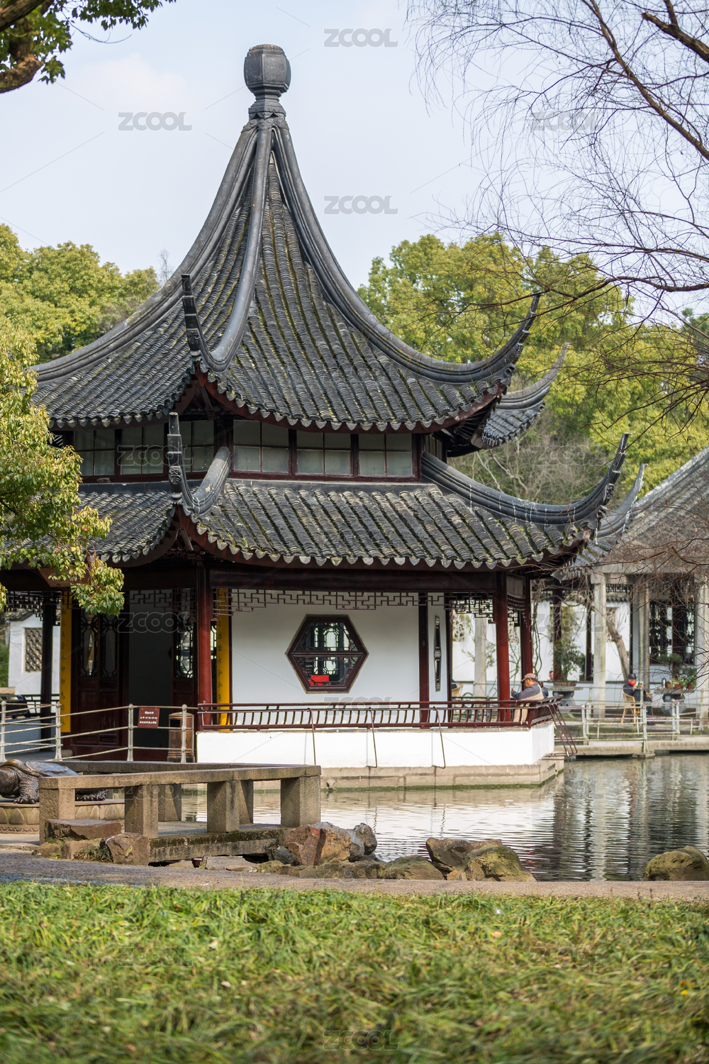 晴朗的午后,扬州瘦西湖江南园林建筑