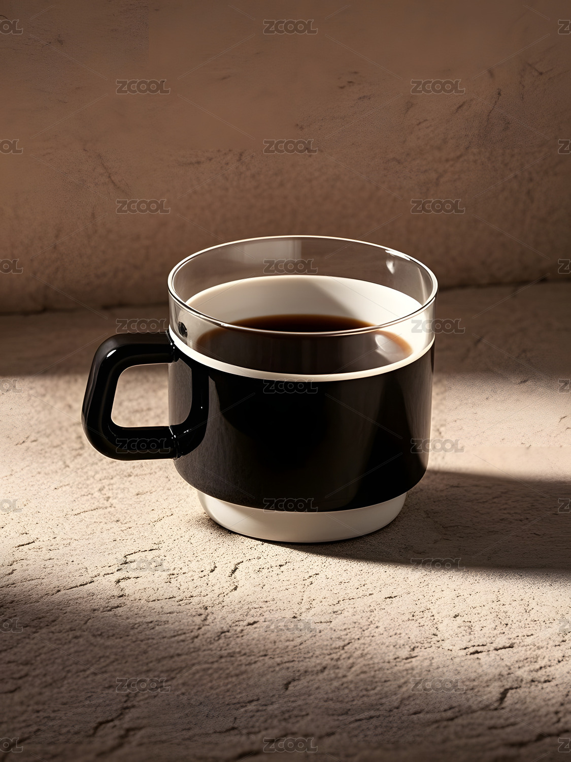 浅棕色背景前盛黑咖啡的透明玻璃杯