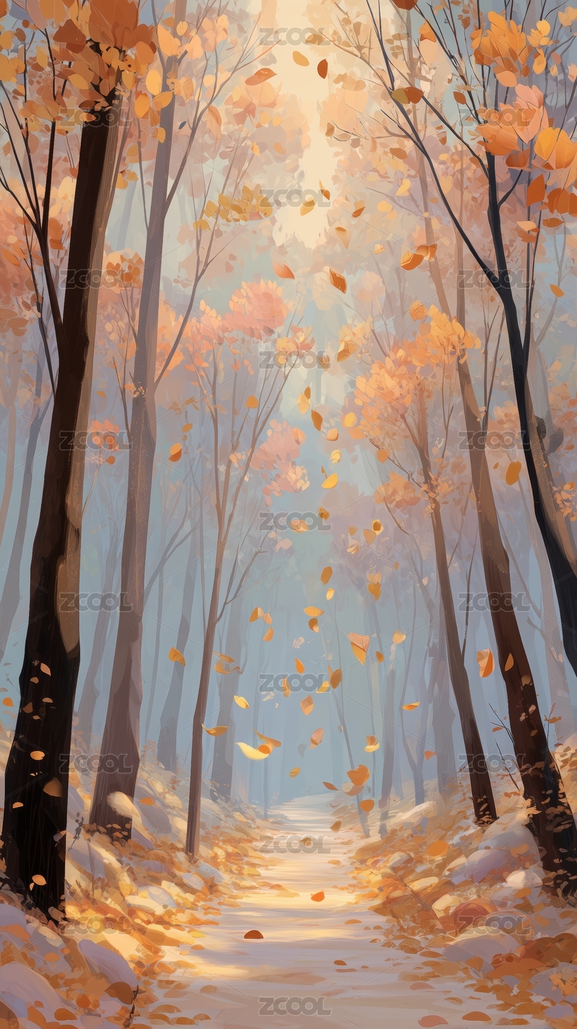秋季,秋天,落叶,风景,山,公园,风光,自然,环境,插画