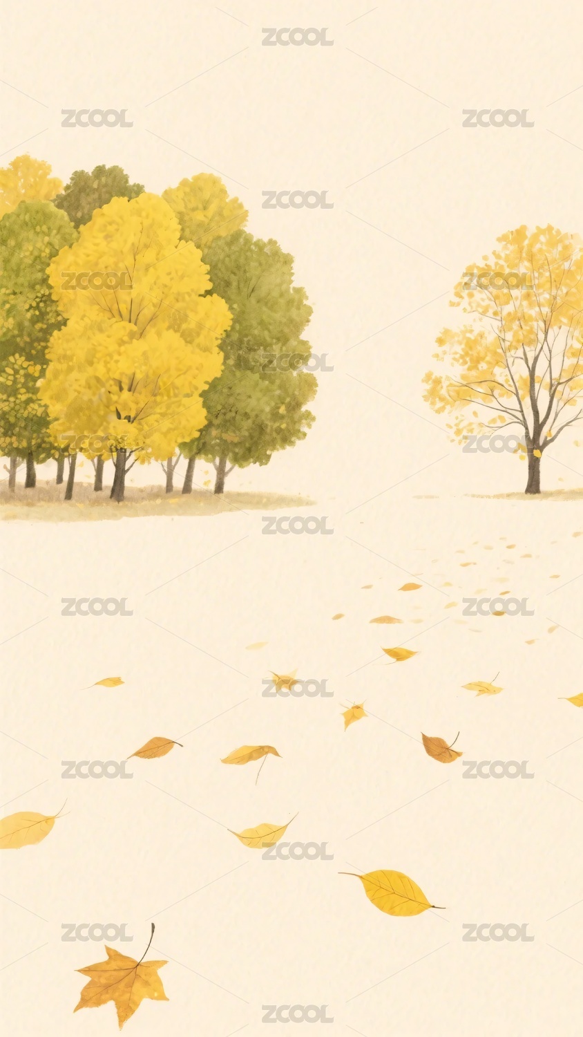 秋季树林落叶插画