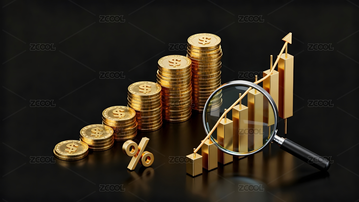 金币与柱状图展现金融景象