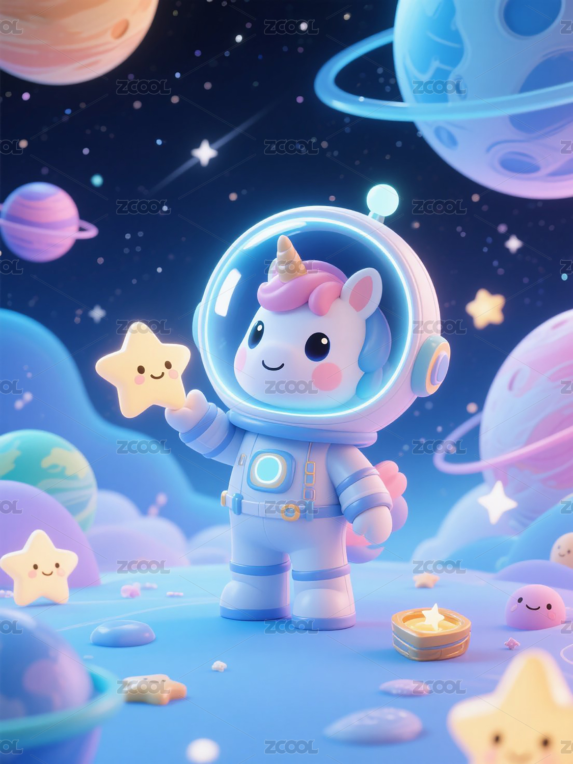 卡通,太空,场景,宇航员,萌趣,星星,月亮,互动,可爱,童趣